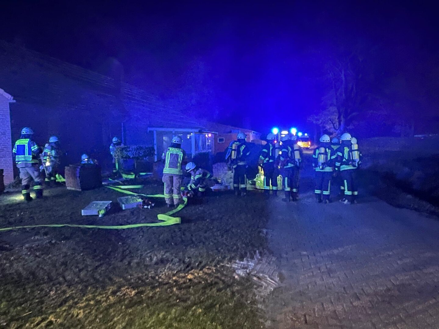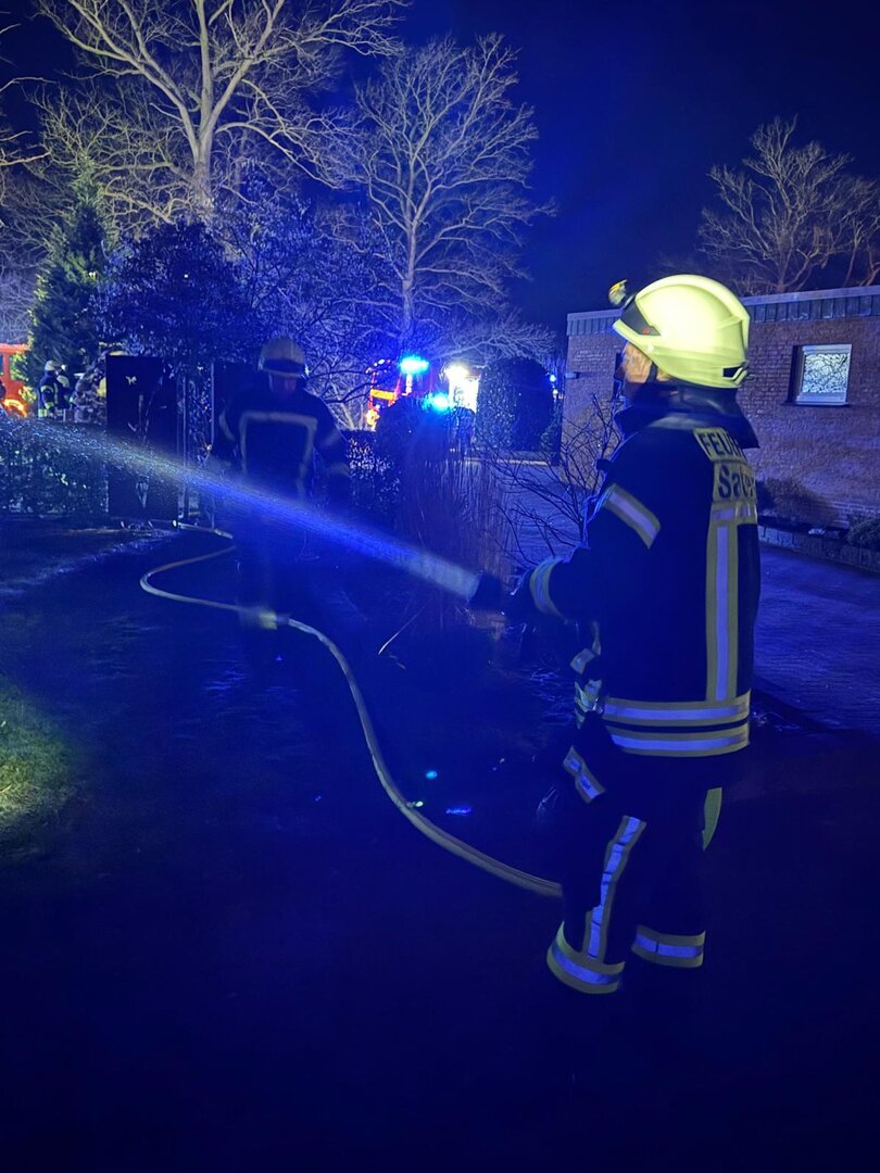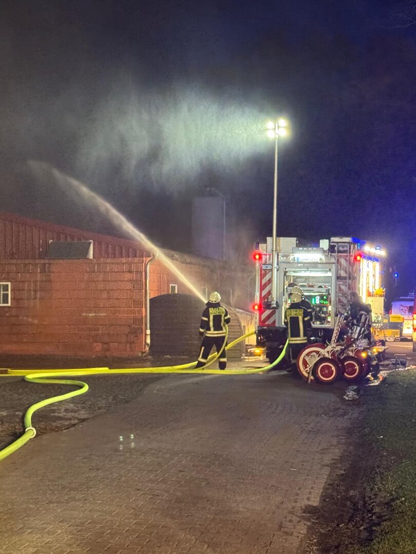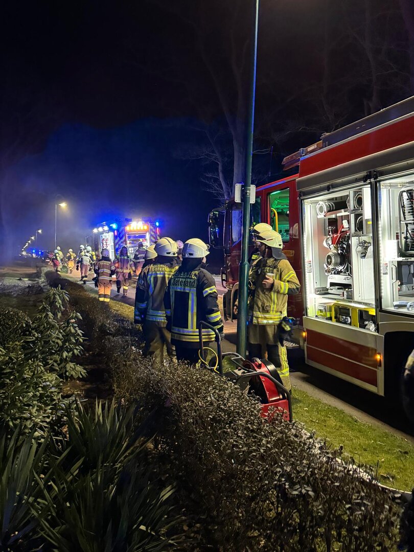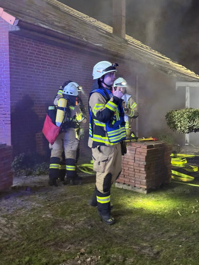 Unter schwerem Atemschutz gingen die Angriffstrupps aus Scharrel und Gehlenberg zur Menschenrettung vor. Die vermissten Personen konnten zügig im Gebäude lokalisiert und gerettet werden. Parallel dazu wurde eine umfangreiche Wasserversorgung aufgebaut, um die Brandbekämpfung sicherzustellen.
