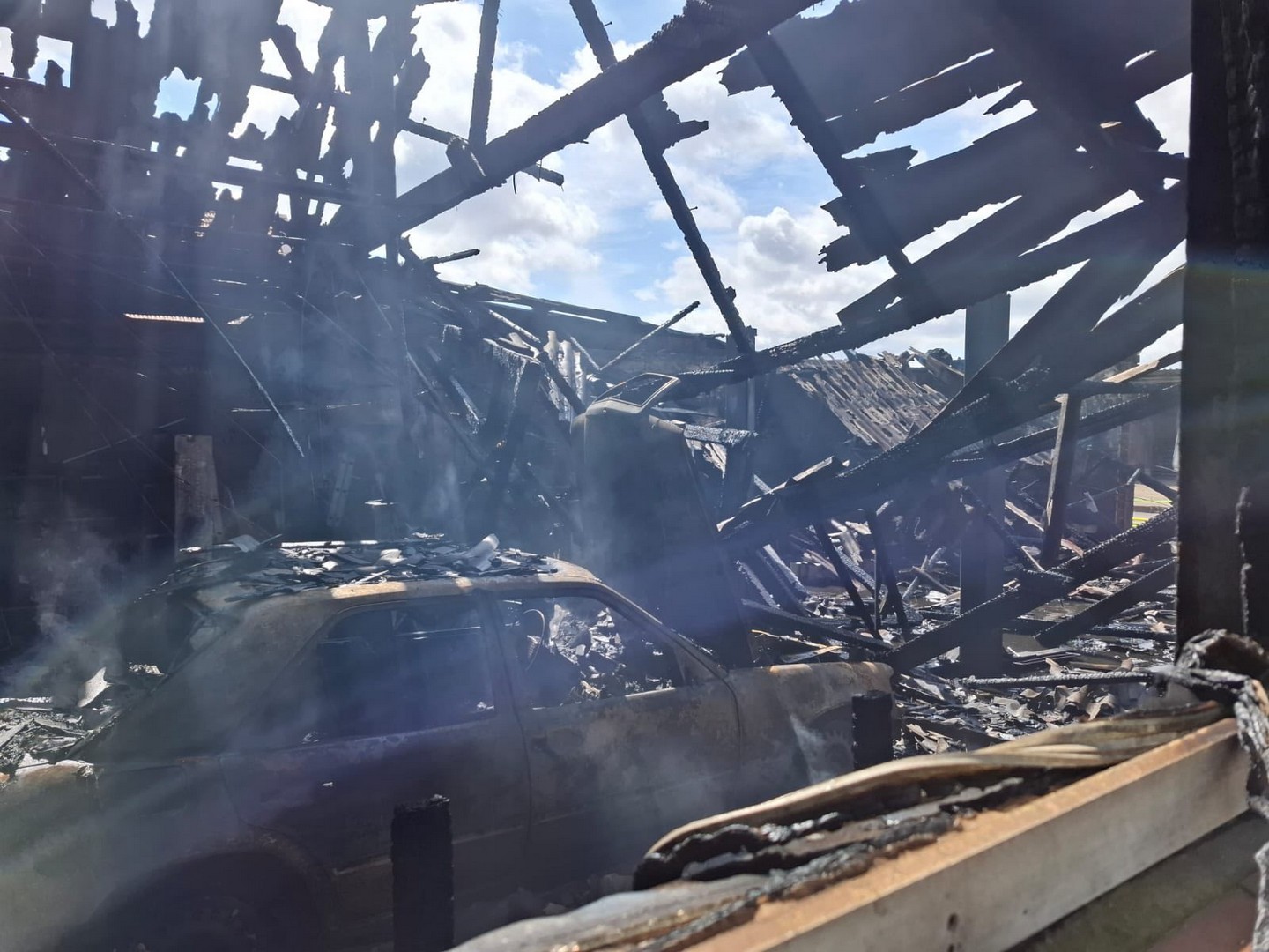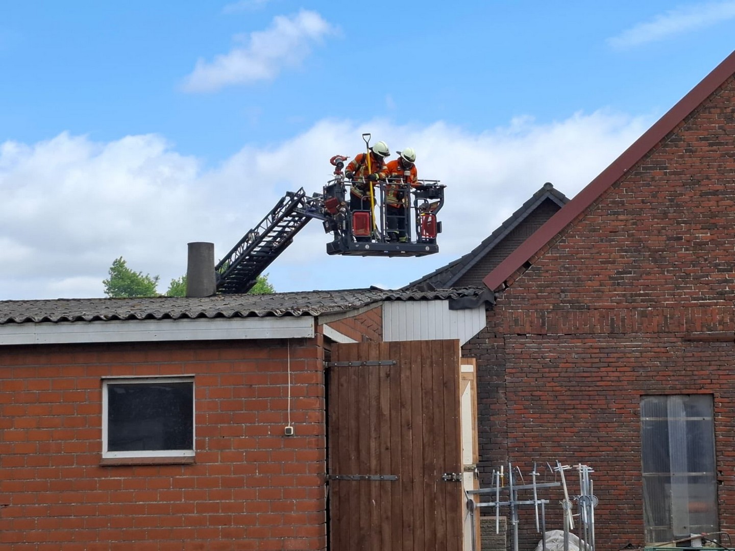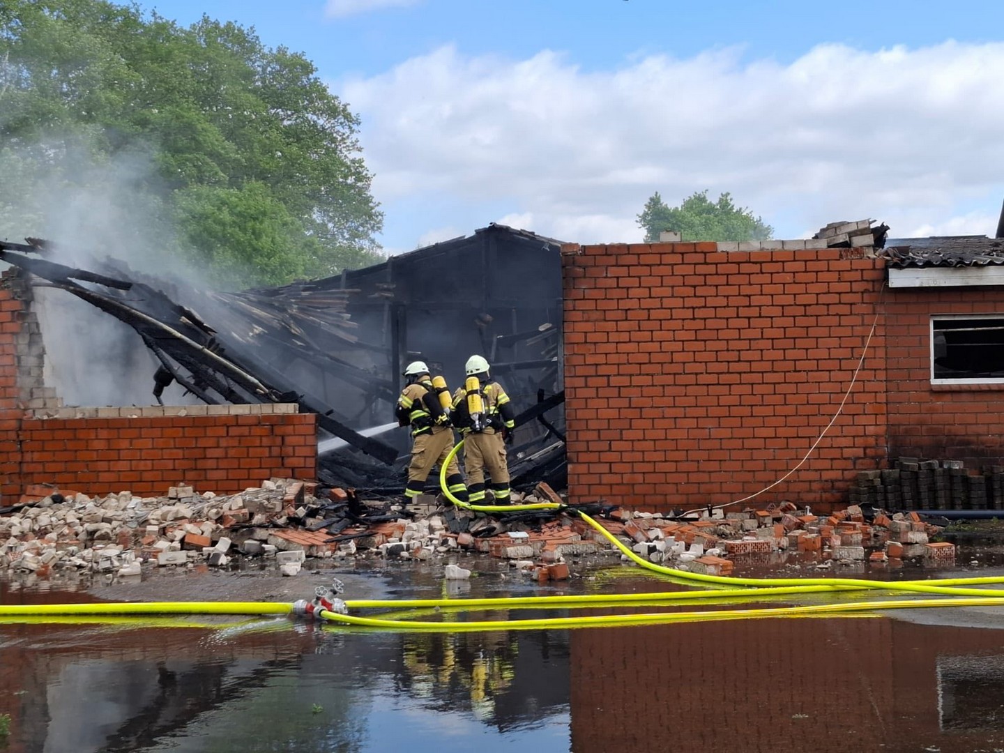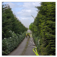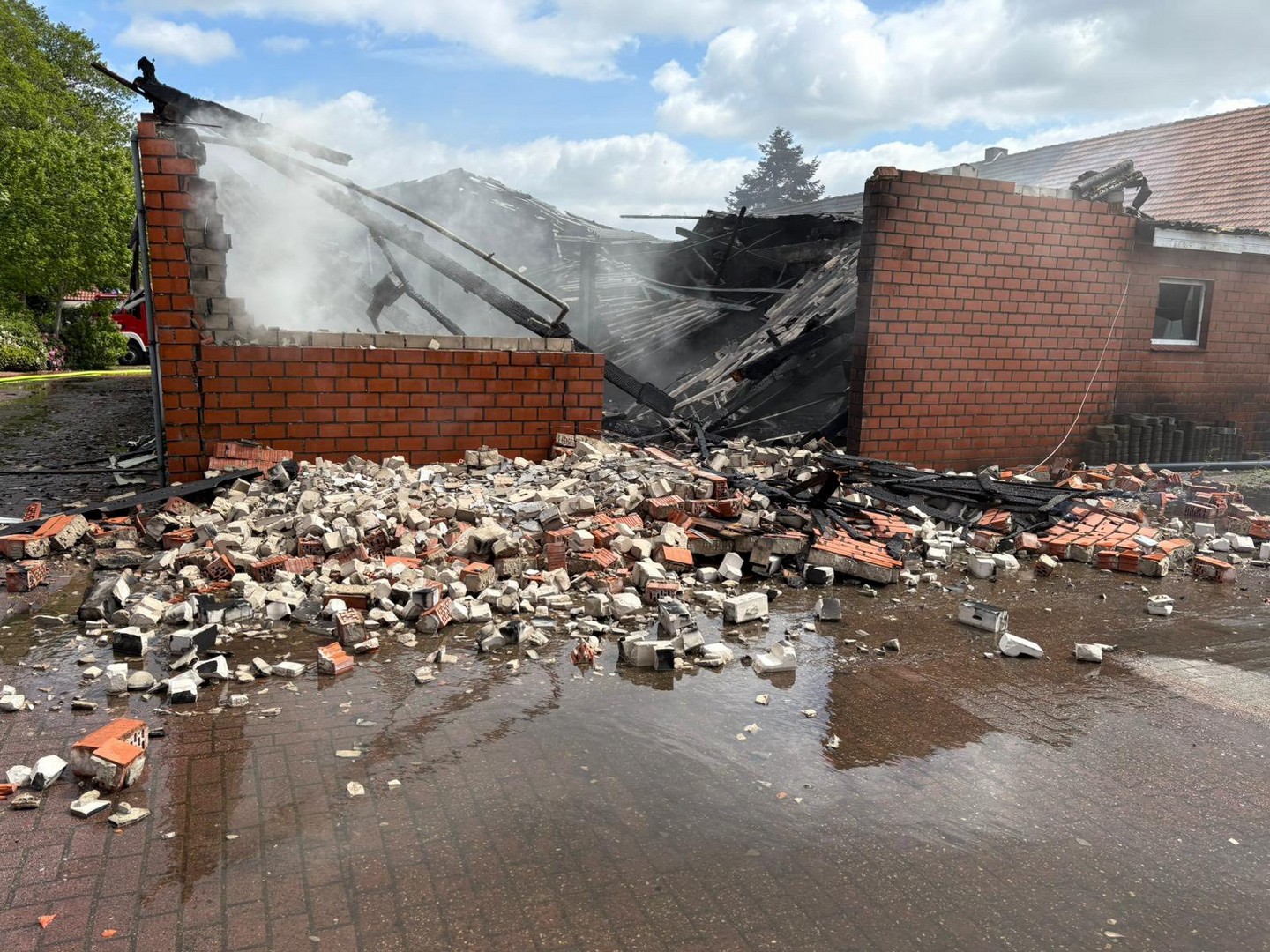 Schon auf der Anfahrt konnte man eine dichte Rauchwolke sehen, beim Eintreffen an der Einsatzstelle wurde umgehend mit der Brandbekämpfung unter Atemschutz begonnen. Kurz darauf trafen die Einsatzkräfte aus Friesoythe ein und bauten eine Wasserversorgung auf.
