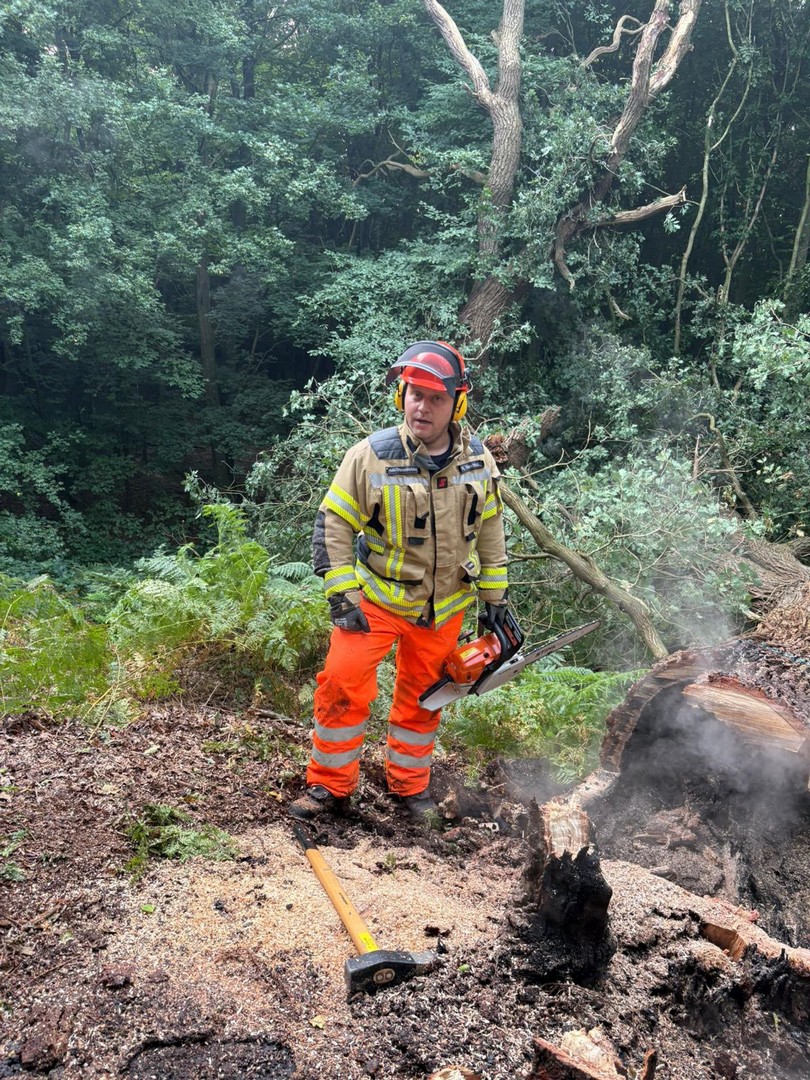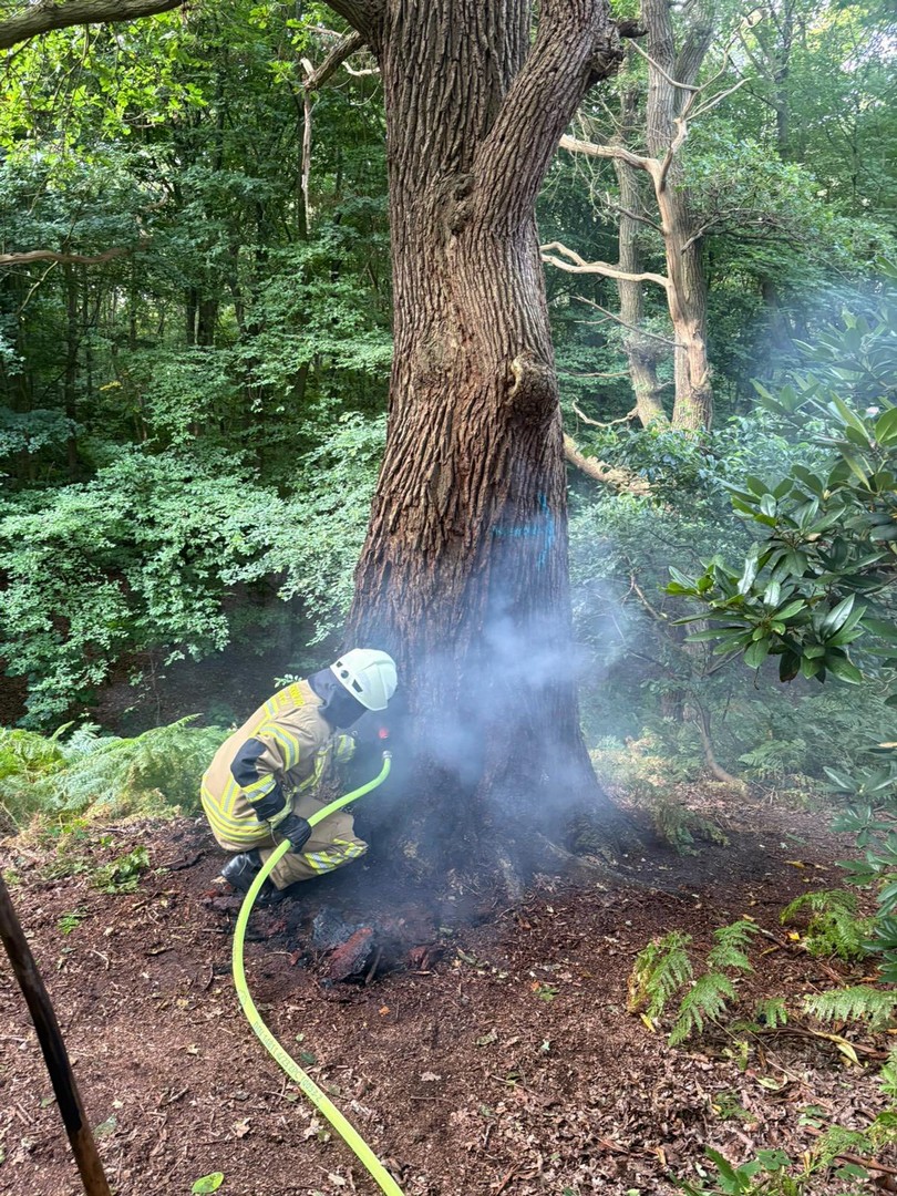 Beim Eintreffen zeigte sich schnell, dass der Brand bereits weit fortgeschritten war und der Baum keine Stabilität mehr hatte. Zuerst löschten wir das Feuer im Inneren, anschließend mussten wir den Baum zum Schutz der Bürger fällen.