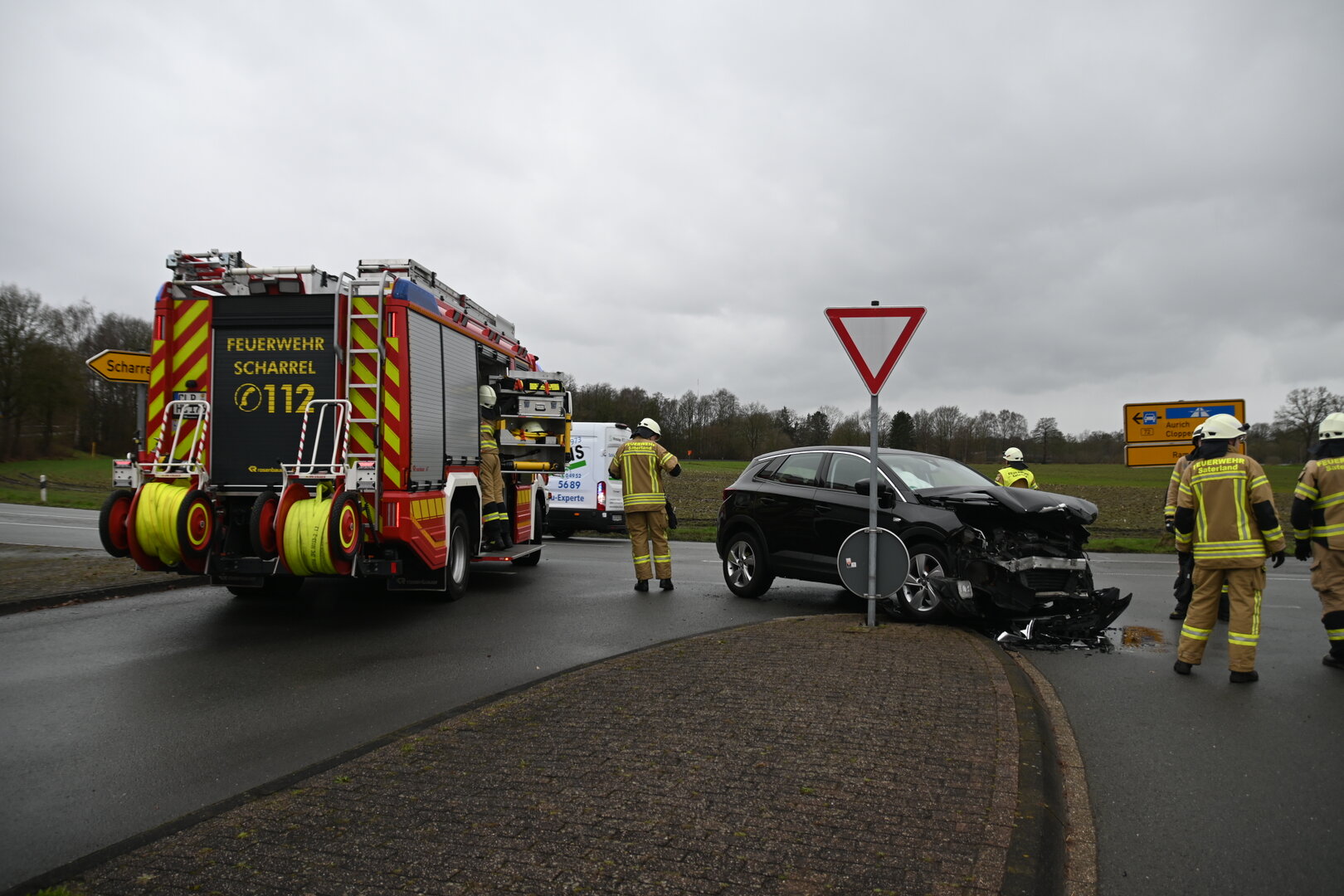 Auf der Hauptstraße war es zu einer Kollision zwischen zwei Pkw gekommen. Ein Fahrzeug aus Richtung B72 kommend stieß mit einem abbiegenden Pkw zusammen, der in Richtung Scharrel fahren wollte.