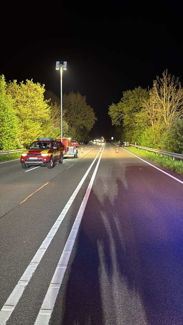 Gegen 22:14 Uhr wurden wir abermals zur Einsatzstelle auf der B72 alarmiert. Die Polizei bat um Amtshilfe, um die Unfallstelle für weitere Maßnahmen auszuleuchten.