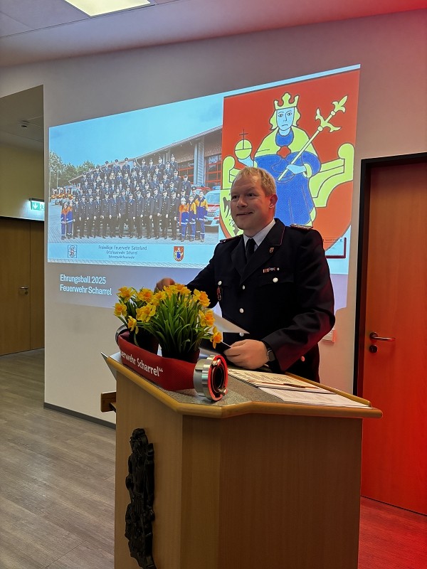 Scharrel – In festlichem Rahmen fand am Samstag der Ehrungsball 2025 der Feuerwehr Scharrel statt. Ortsbrandmeister Lukas von Kajdacsy konnte dazu zahlreiche Gäste begrüßen, darunter Bürgermeister Thomas Otto mit seiner Lebensgefährtin, den Ortsbrandmeister der Feuerwehr Ramsloh Matthias Schulte, den stellvertretenden Gemeindebrandmeister Kevin Heese sowie viele Kameradinnen und Kameraden mit ihren Partnerinnen und Partnern.