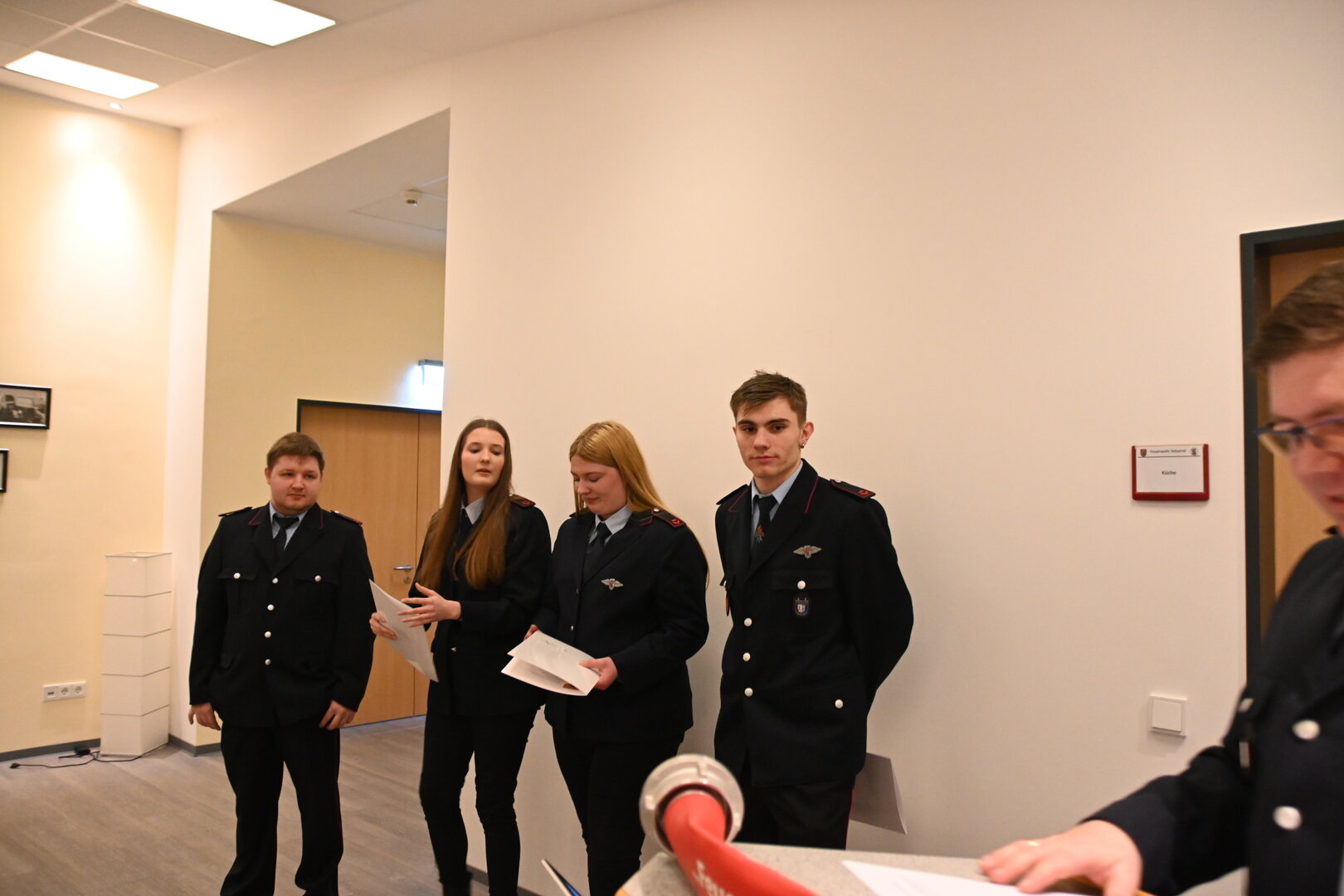 Jugendfeuerwehrwartin Vera Pörschke berichtete von einem ereignisreichen Jahr für den Feuerwehrnachwuchs. Neben der Teilnahme am Pfingstzeltlager, Dorffesten und dem Martinsumzug standen auch Wettbewerbe auf dem Programm. Besonders erfreulich: Der Titel „Jugendfeuerwehrfrau des Jahres 2024“ ging an Fynn Fürup.