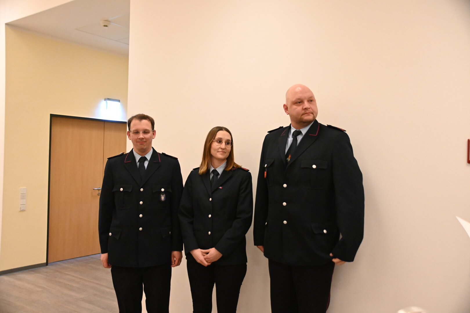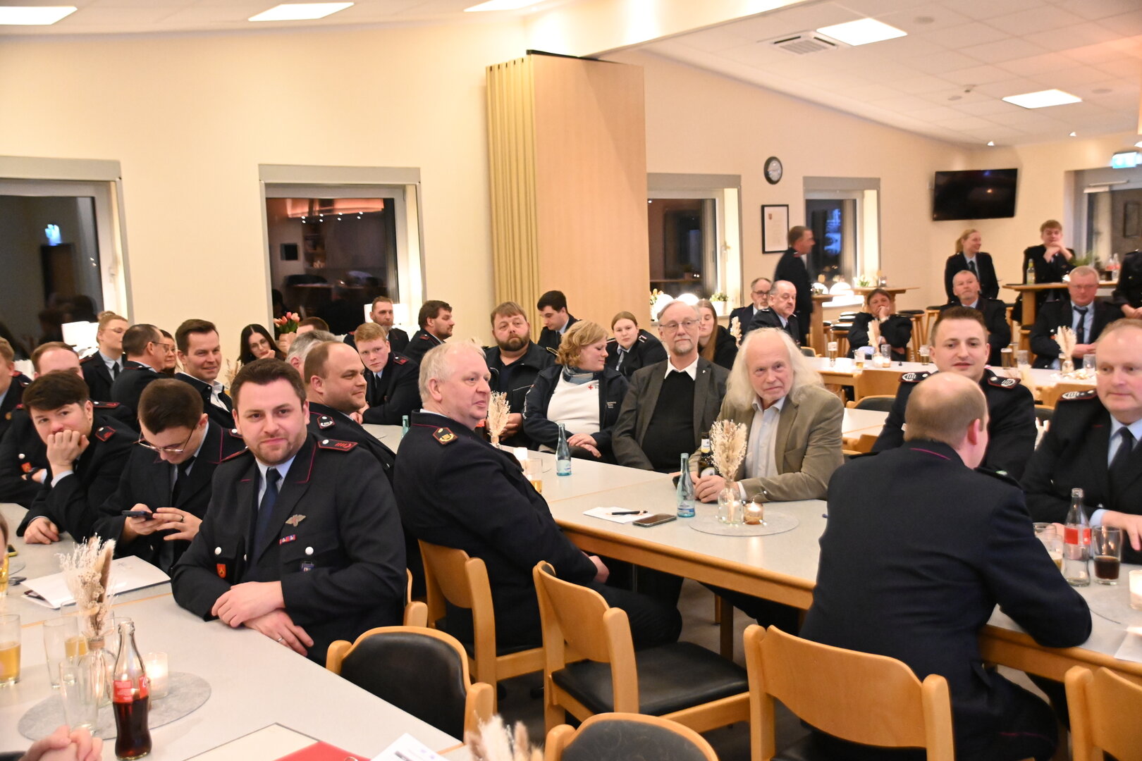 Unter den Anwesenden waren unter anderem Bürgermeister Thomas Otto, Ordnungsamtsleiter Christof Naber, der stellvertretende Kreisbrandmeister Franz Josef Nording als Vertreter des Kreisfeuerwehrverband Cloppenburg, Gemeindebrandmeister Matthias Pörschke mit seinem Stellvertreter Kevin Heese, Ortsbrandmeister Matthias Schulte von der Feuerwehr Ramsloh mit seinem Stellvertreter Timo Hinrichs, Gemeindepressewart Thomas Giehl, der Vorsitzende des Feuerwehrfachausschusses Georg Tebben, Pfarrer Ludger Fischer sowie Andreas Thoben von der Öffentlichen Versicherung. Ebenso begrüßt wurden die Kameraden der Alters- und Ehrenabteilung sowie alle aktiven Mitglieder. Besonders hervorgehoben wurde Greta Kawaletz als „Jugendfeuerwehrfrau des Jahres 2025“.