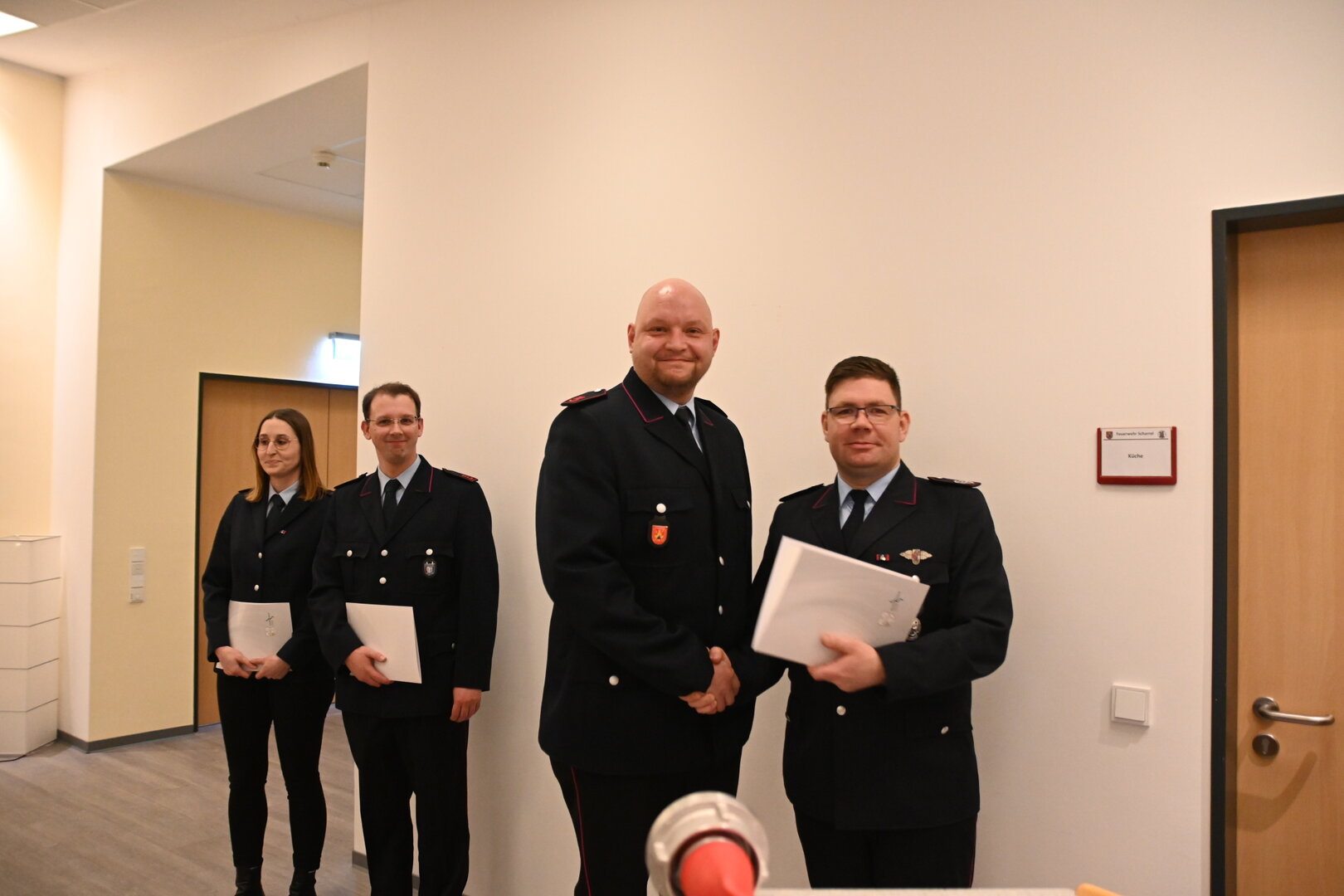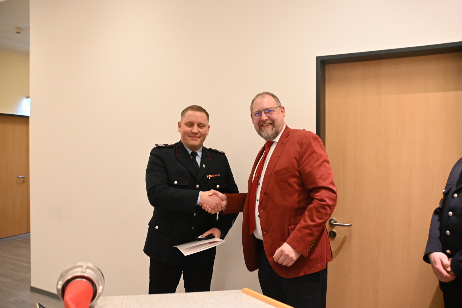 Gemeindebrandmeister Matthias Pörschke beförderte Christian Kuhl zum 1. Hauptbrandmeister.