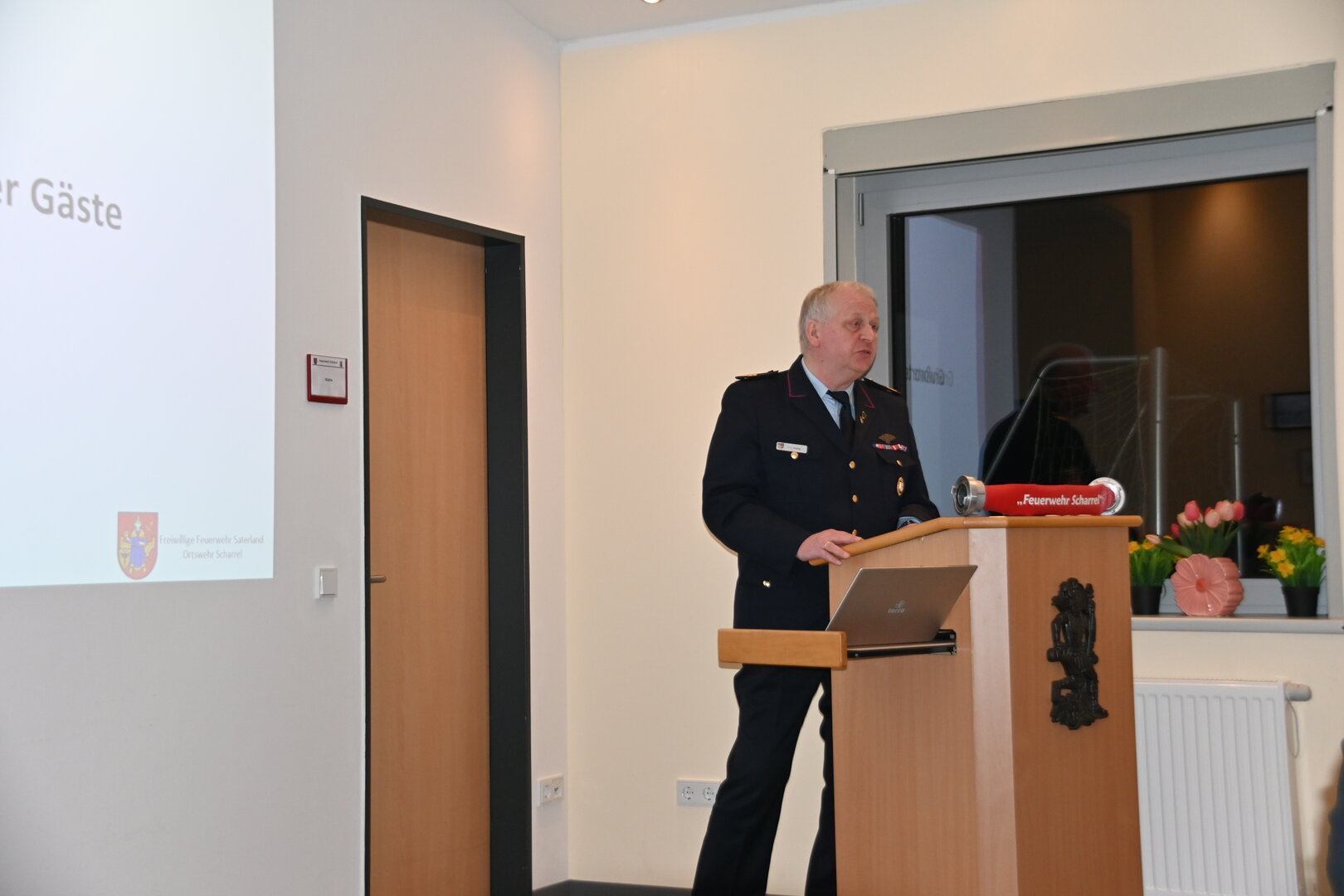 In seiner einleitenden Rede fand Ortsbrandmeister von Kajdacsy eindrucksvolle Worte für das Engagement der Feuerwehrangehörigen. Er schilderte die Situation eines nächtlichen Einsatzes und betonte den besonderen Zusammenhalt innerhalb der Wehr: „Feuerwehr ist weit mehr als Technik, Uniform und Dienstplan. Feuerwehr ist Verlässlichkeit. Vertrauen. Und Zusammenhalt, auch dann, wenn es unbequem wird.“ Die Versammlung solle nicht nur Zahlen präsentieren, sondern bewusst machen, was im vergangenen Jahr gemeinsam geleistet worden sei.