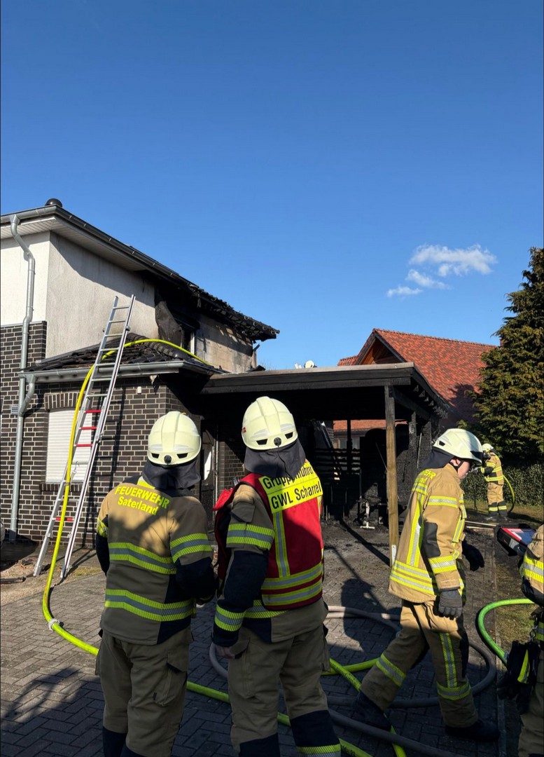 Am Samstagnachmittag gegen 15:29 Uhr wurde die Feuerwehr Ramsloh zur Straße „Am Ried“ alarmiert. Gemeldet wurde ein brennender Carport, der bereits auf ein Wohnhaus übergegriffen hatte. Bereits bei der Anfahrt war eine dichte Rauchwolke zu sehen – der Ortsbrandmeister der FF Ramsloh meldete sofort die Stichworterhöhung auf F3 an die Großleitstelle Oldenburger Land. Hier wurde sofort die Feuerwehr Scharrel zur Unterstützung alarmiert.