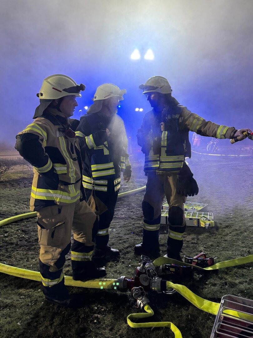Unter schwerem Atemschutz gingen die Angriffstrupps aus Scharrel und Gehlenberg zur Menschenrettung vor. Die vermissten Personen konnten zügig im Gebäude lokalisiert und gerettet werden. Parallel dazu wurde eine umfangreiche Wasserversorgung aufgebaut, um die Brandbekämpfung sicherzustellen.