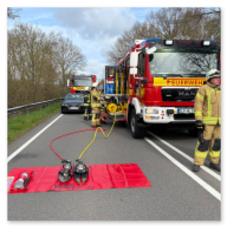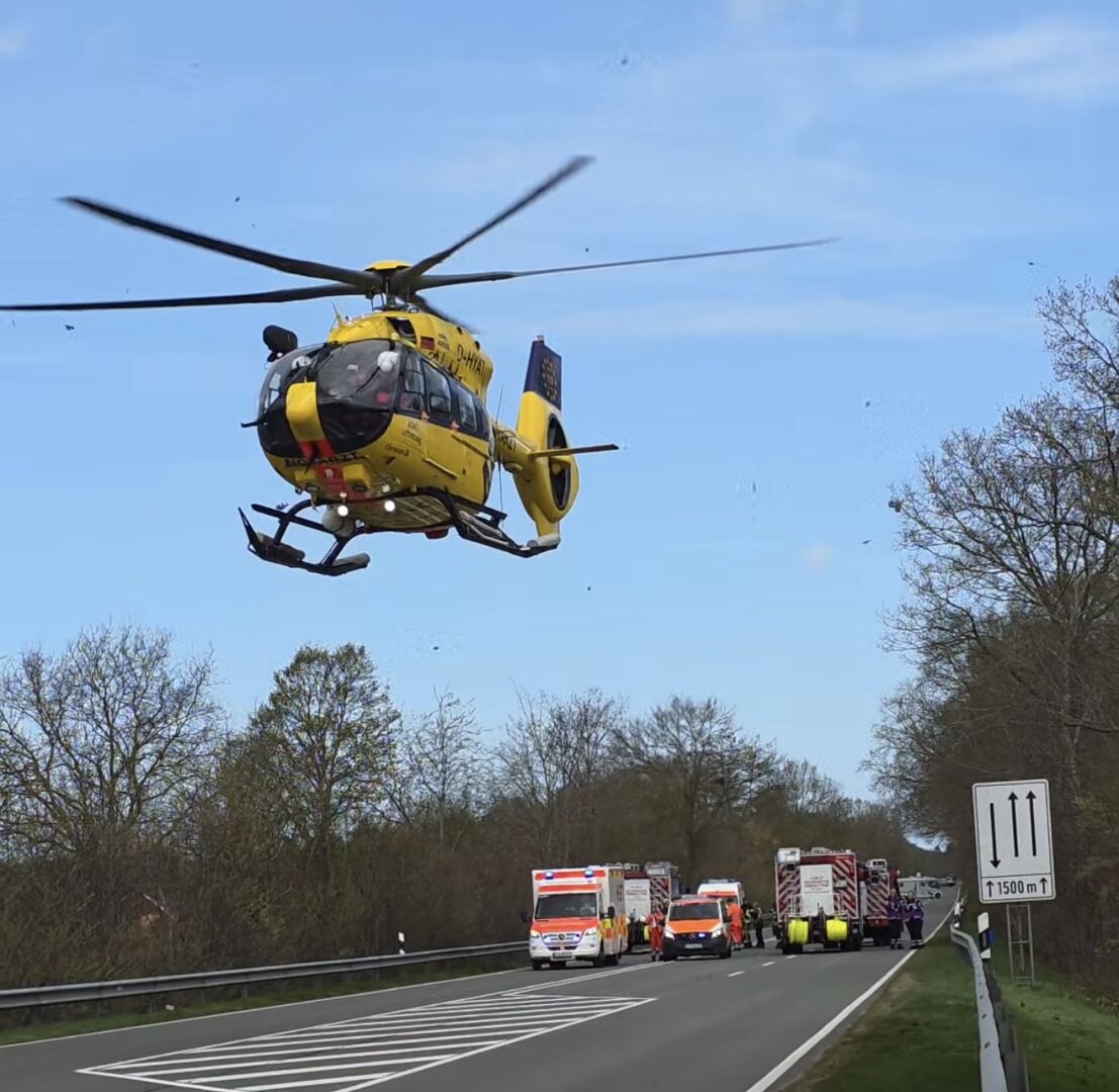 Um 11:07 Uhr wurde die Feuerwehr Scharrel und Friesoythe zu einem schweren Verkehrsunfall auf die B72 in Höhe Sedelsberg alarmiert. Vor Ort unterstützten wir das DRK bei der Rettung einer verletzten Person aus ihrem Fahrzeug. Die Feuerwehr Friesoythe sicherte den Landeplatz für den Rettungshubschrauber ab.
