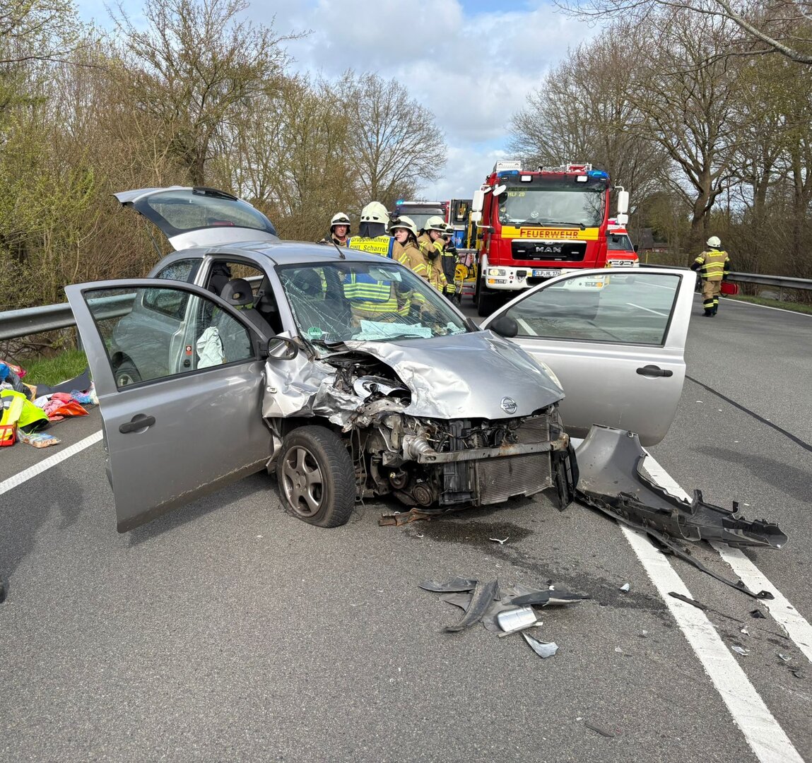 Eine 36-jährige Autofahrerin aus Spahnharrenstätte war aufgrund einer Panne mit eingeschaltetem Warnblinklicht und geringer Geschwindigkeit in Richtung Saterland unterwegs. Eine 28-jährige Fahrerin aus Barßel erkannte dies offenbar zu spät und fuhr auf das Fahrzeug auf. Beide PKW gerieten ins Schleudern. Die 28-Jährige Frau wurde so verletzt, dass sie mit dem Rettungshubschrauber in ein Krankenhaus geflogen wurde. Die 36-Jährige Frau erlitt leichte Verletzungen und wurde mit einem Rettungswagen in ein Krankenhaus gebracht.