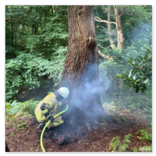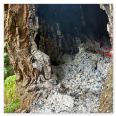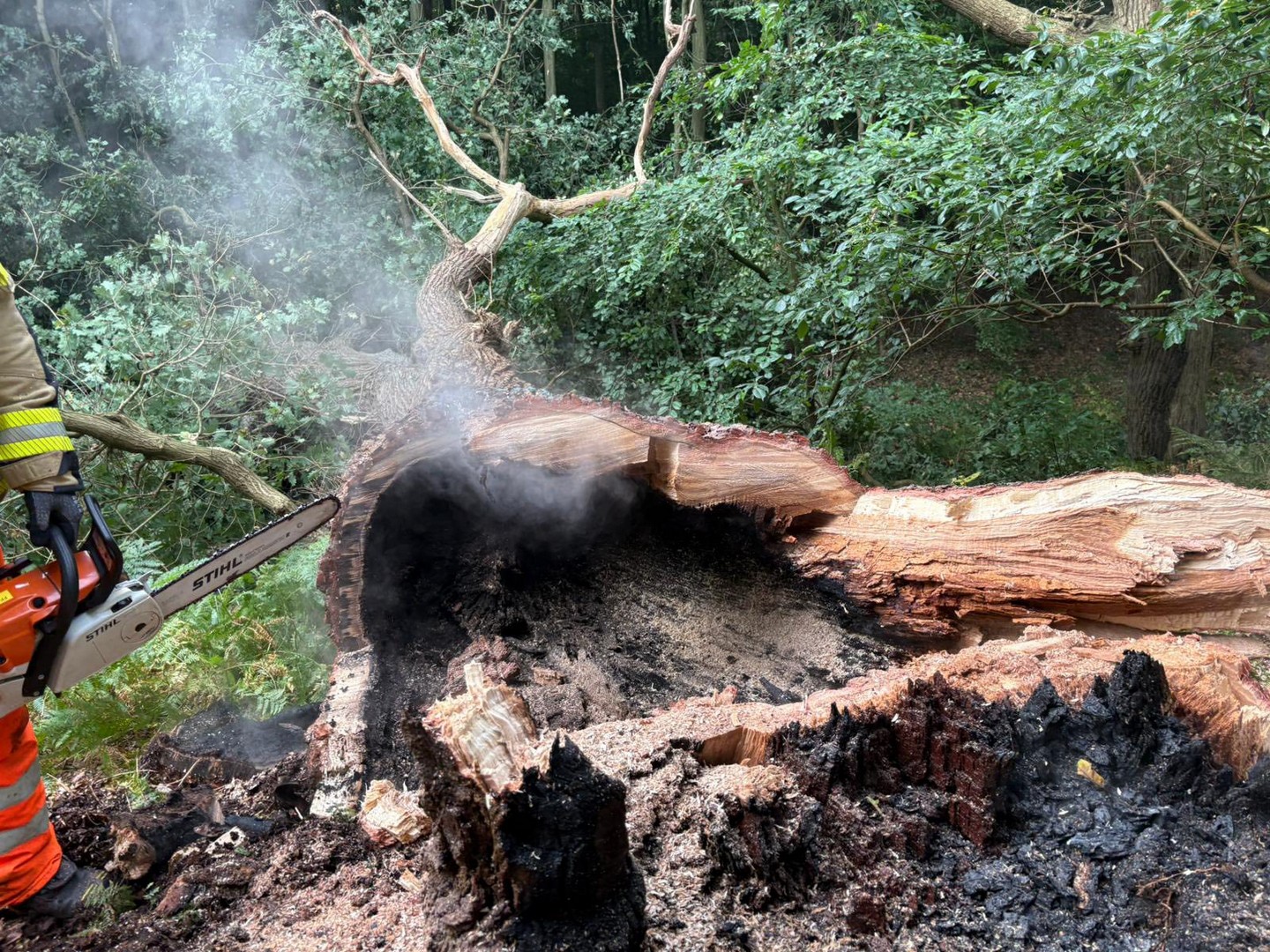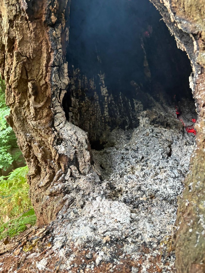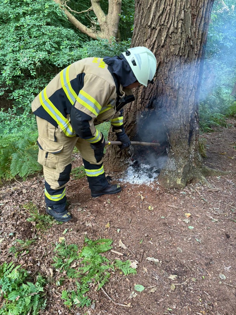 Beim Eintreffen zeigte sich schnell, dass der Brand bereits weit fortgeschritten war und der Baum keine Stabilität mehr hatte. Zuerst löschten wir das Feuer im Inneren, anschließend mussten wir den Baum zum Schutz der Bürger fällen.