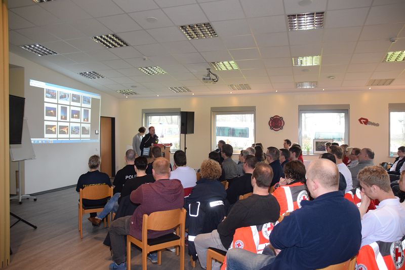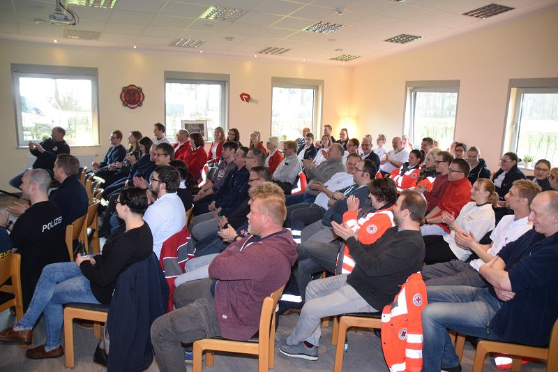 Scharrel – LK Cloppenburg – Ein voller Erfolg war in diesem Jahr das 10. First Responder Symposium im Feuerwehrhaus Scharrel. Rund 80 Teilnehmer aus dem Landkreis Cloppenburg, Ammerland, Jaderberg, selbst Kameraden aus Wistedt in der nähe von Hamburg waren extra für das Symposium angereist. Gegen 08:30 Uhr war Einlass im Feuerwehrhaus Scharrel dort wurde Kaffee und belegte Brötchen für alle anwesenden gereicht. Ortsbrandmeister Stefan Vocks von der Feuerwehr Scharrel begrüßte die ca. 80 Anwesenden des 10. First Responder Symposiums. Einen besonderen Dank sprach er den Organisations Team, den First Responder Team aus Scharrel mit Gruppenführer Matthias Blanke und seiner stellv. Andrea Janssen und der wissenschaftlichen Leiterin Kreisfeuerwehrärztin Almuth Opolka aus. Als erste Referentin sprach Kreisfeuerwehrärztin Almut Opolka über das Thema "Versorgung des Polytraumas". Hier ging es um lebensbedrohliche Mehrfachverletzungen. Nach einer 10-minütigen Pause ging es weiter mit dem Referenten Christian Lanfermann Fachkrankenpfleger und Leiter des Fachweiterbildung Hanse Institut Oldenburg. Hier ging es um das Thema „Besondere Patientengruppen in der Trauma Versorgung´´. Als letzter Referent und mit einem besonderen Thema ,,Keine Gewalt gegen Retter“ sprach Polizeihauptkommissar Roland Wilke über seine eigenen Erfahrungen als Polizist bei Einsätzen. Das für alle Retter, sowohl Feuerwehr, Rettungssanitäter, Polizei uvm. ein sehr wichtiges Thema ist.