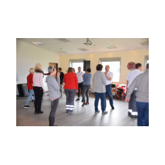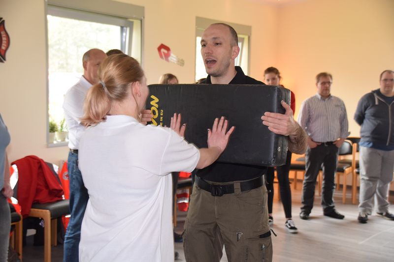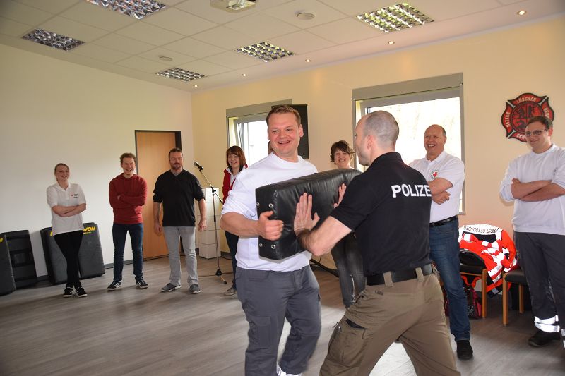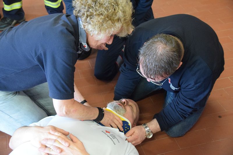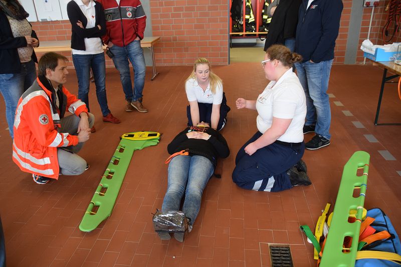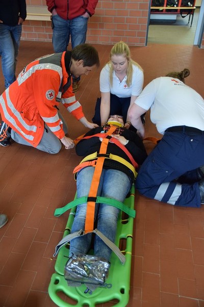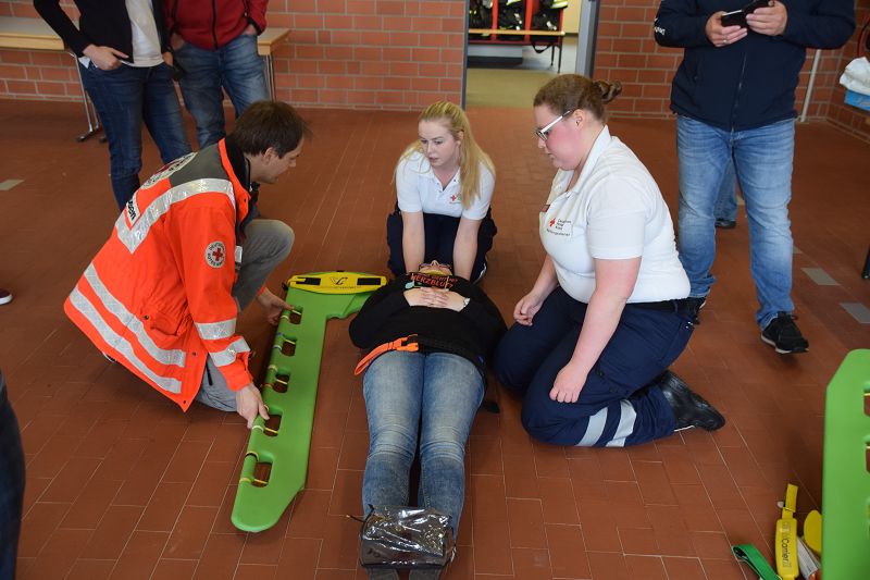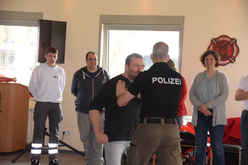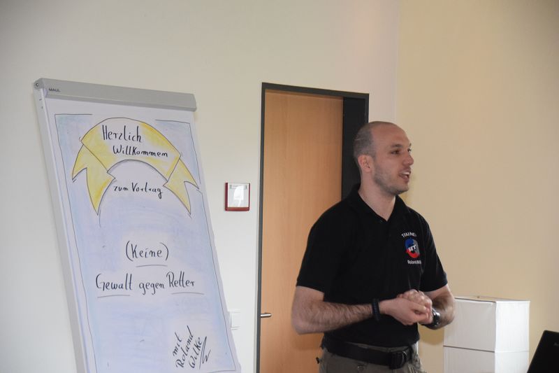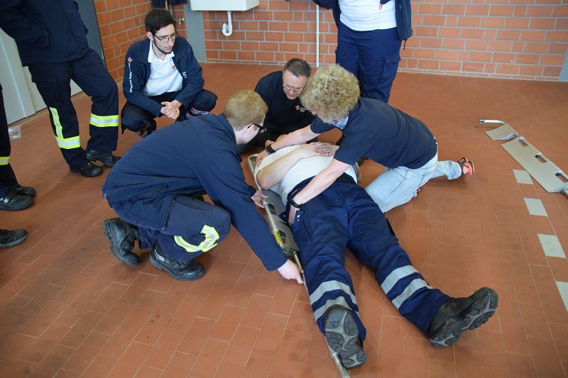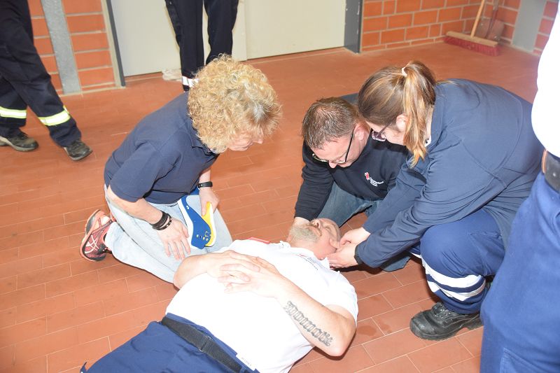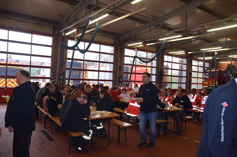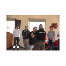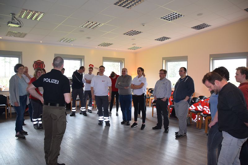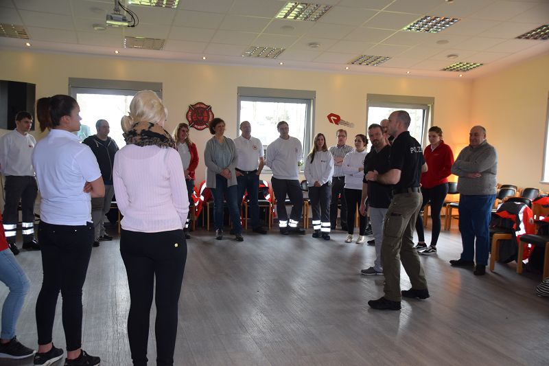 Nach den Referenten ging es nach dem Mittag (hier ein Dank an die Küchencrew) mit den Workshops los. Markus Macke (Notfallsanitäter, Praxisanleiter DRK) und sein Team, sowie Roland Wilke von der Polizei Friesoythe bereiteten folgende Workshops vor: Deeskalation im Einsatz, HWS Stabilisierung, Spineboard / Vacuummatratze, Rettung. In drei Gruppen wurden die Besucher aufgeteilt und durchliefen alle Stationen. Gegen 15 Uhr wurde das 10. Symposium des First Responder Teams Scharrel beendet.