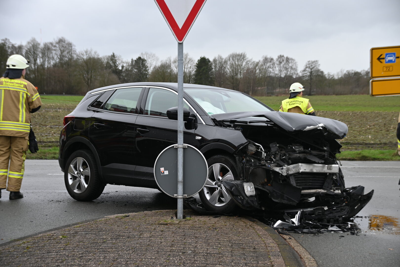 Auf der Hauptstraße war es zu einer Kollision zwischen zwei Pkw gekommen. Ein Fahrzeug aus Richtung B72 kommend stieß mit einem abbiegenden Pkw zusammen, der in Richtung Scharrel fahren wollte.