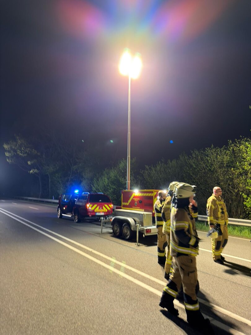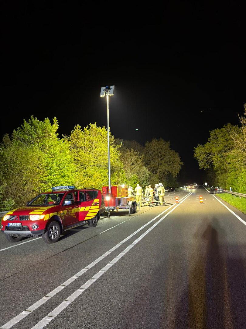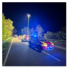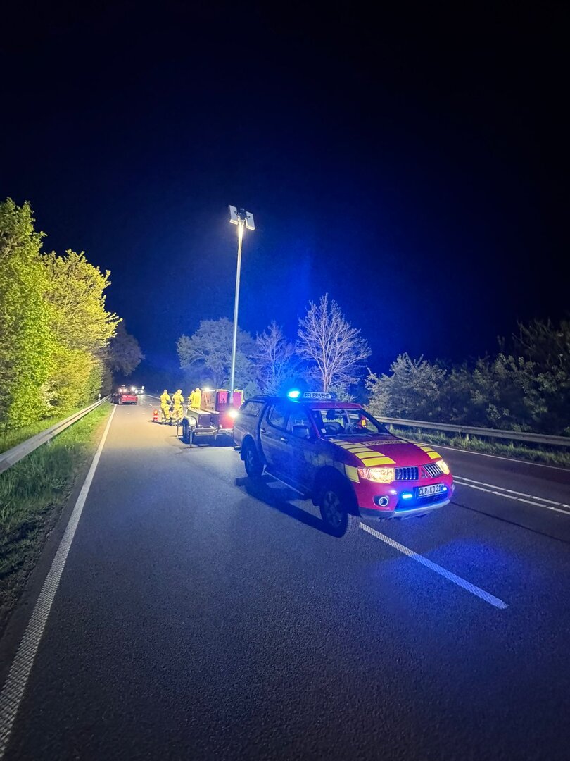 Gegen 22:14 Uhr wurden wir abermals zur Einsatzstelle auf der B72 alarmiert. Die Polizei bat um Amtshilfe, um die Unfallstelle für weitere Maßnahmen auszuleuchten.