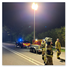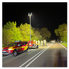 Im Zuge der Unfallaufnahme wird die Einsatzstelle durch die Polizei vermessen. Hierfür stellten wir unseren Lichtmastanhänger zur Verfügung und unterstützten hiermit die Arbeit der Polizei vor Ort.