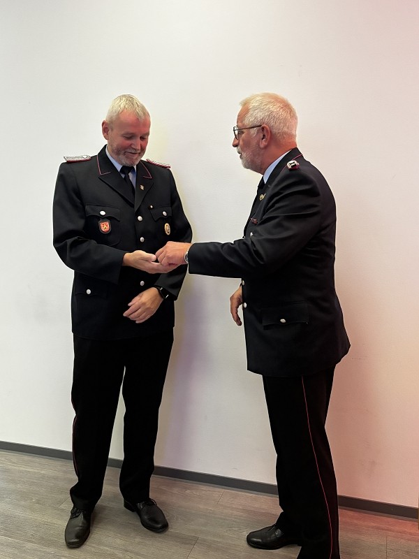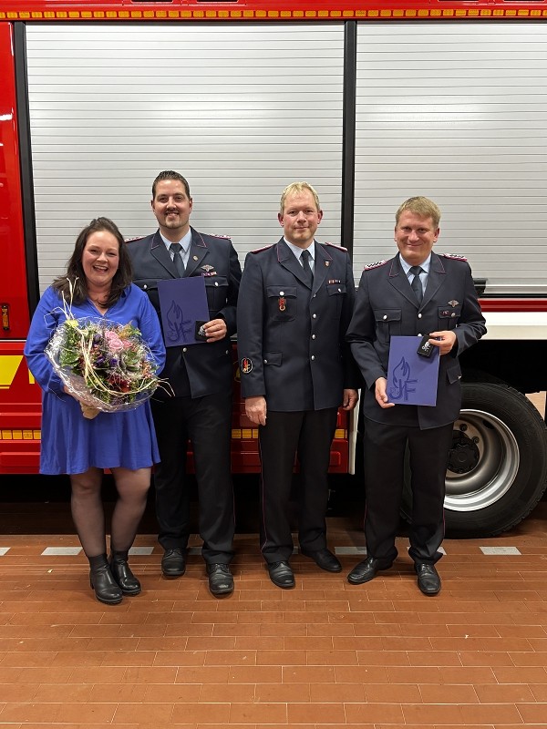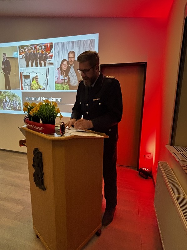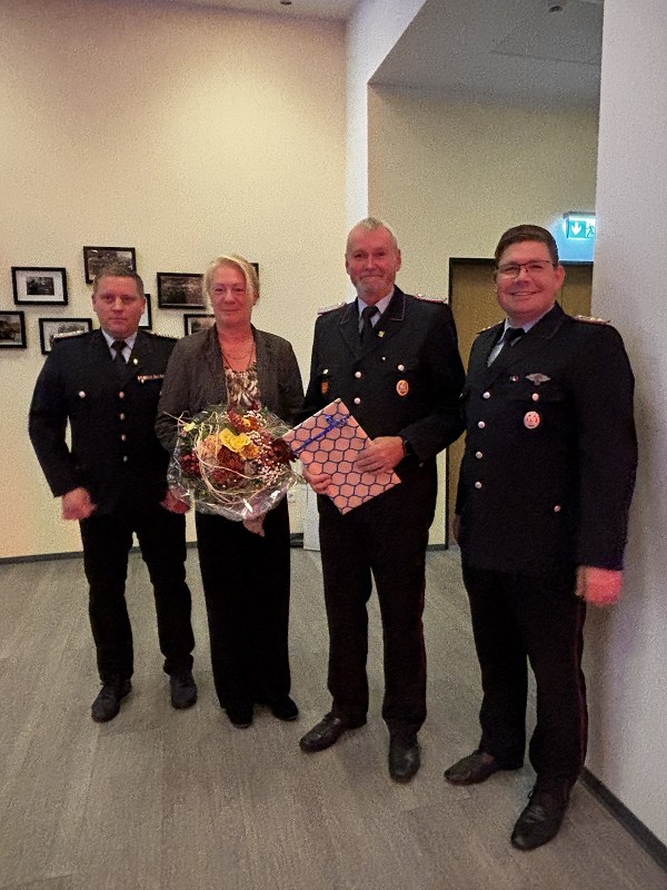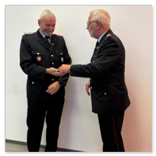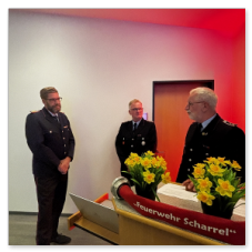 Dieter Janßen war seit Anfang der 1980er-Jahre aktiv und absolvierte zahlreiche Lehrgänge bis hin zum Zugführer. Viele Jahre war er in Scharrel als Führungskraft tätig, sein Dienstgrad ist Brandmeister und war zuletzt als Zugführer in der FF Scharrel tätig. Besonders seine Arbeit im First-Responder-Team und sein Fachwissen im Bereich Technik prägten die Wehr. Auch seine beiden Söhne traten in seine Fußstapfen.Hartmut Hanekamp trat 1990 in die Feuerwehr ein und durchlief eine beeindruckende Laufbahn: vom Feuerwehrmann bis zum Oberbrandmeister, stellvertretender Ortsbrandmeister, später stellvertretender und schließlich Gemeindebrandmeister. Auch auf Kreisebene engagierte er sich bei den Funkern sowie in der Jugendfeuerwehrküche. Besonders in Erinnerung bleibt seine Rolle beim Wiederaufbau nach dem großen Brand in Scharrel. Aus gesundheitlichen Gründen musste er den aktiven Dienst nun beenden. Ortsbrandmeister Lukas von Kajdacsy und sein Stellvertreter Matthias Pörschke überreichten beiden Kameraden ein Präsent.