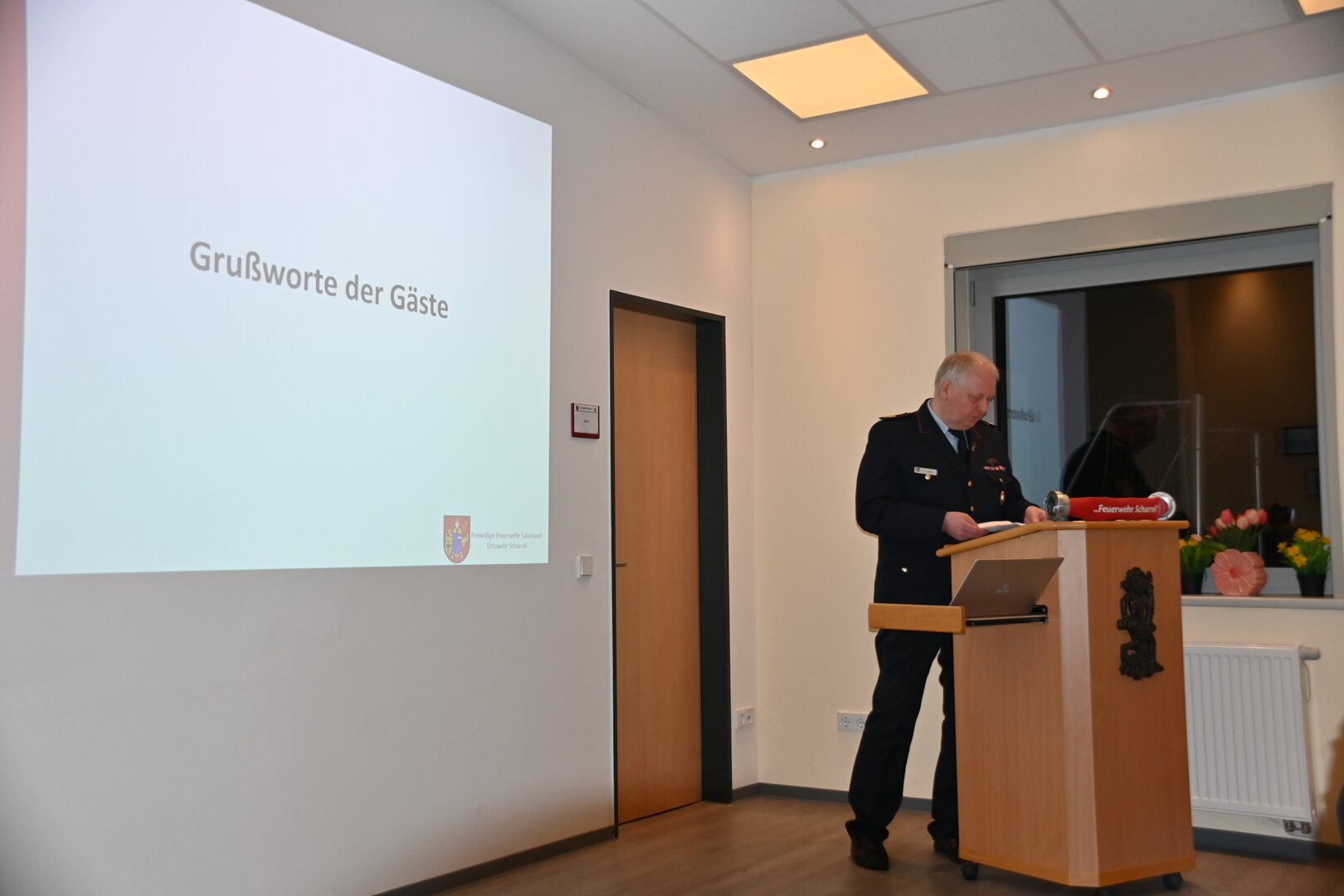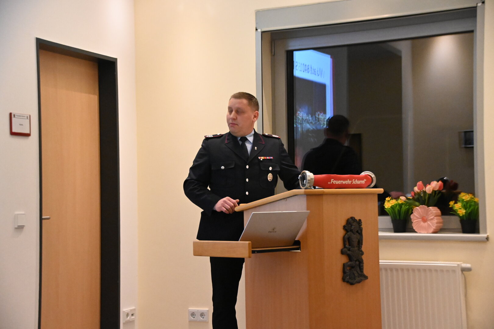 In seiner einleitenden Rede fand Ortsbrandmeister von Kajdacsy eindrucksvolle Worte für das Engagement der Feuerwehrangehörigen. Er schilderte die Situation eines nächtlichen Einsatzes und betonte den besonderen Zusammenhalt innerhalb der Wehr: „Feuerwehr ist weit mehr als Technik, Uniform und Dienstplan. Feuerwehr ist Verlässlichkeit. Vertrauen. Und Zusammenhalt, auch dann, wenn es unbequem wird.“ Die Versammlung solle nicht nur Zahlen präsentieren, sondern bewusst machen, was im vergangenen Jahr gemeinsam geleistet worden sei.