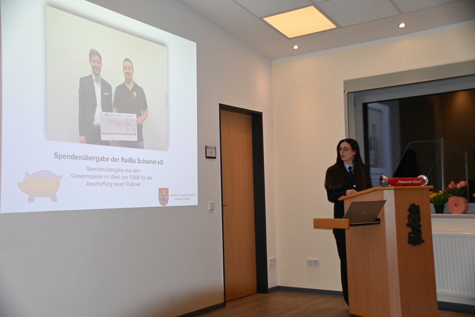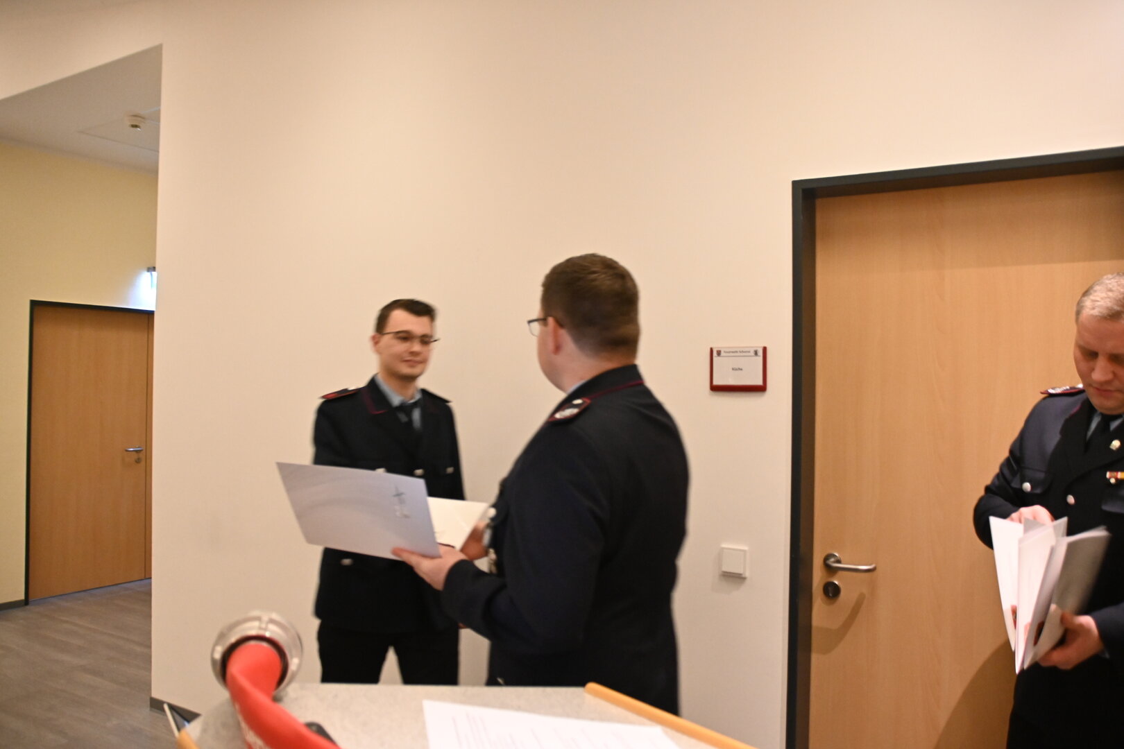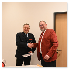 Andreas Thoben von der Öffentlichen Versicherung bedankte sich für die Einladung und überreichte Ortsbrandmeister Lukas von Kajdacsy eine kleine Spende für die Kameradschaftskasse.