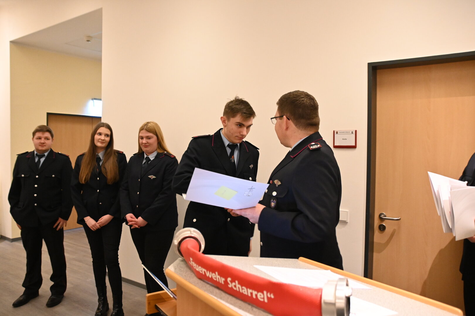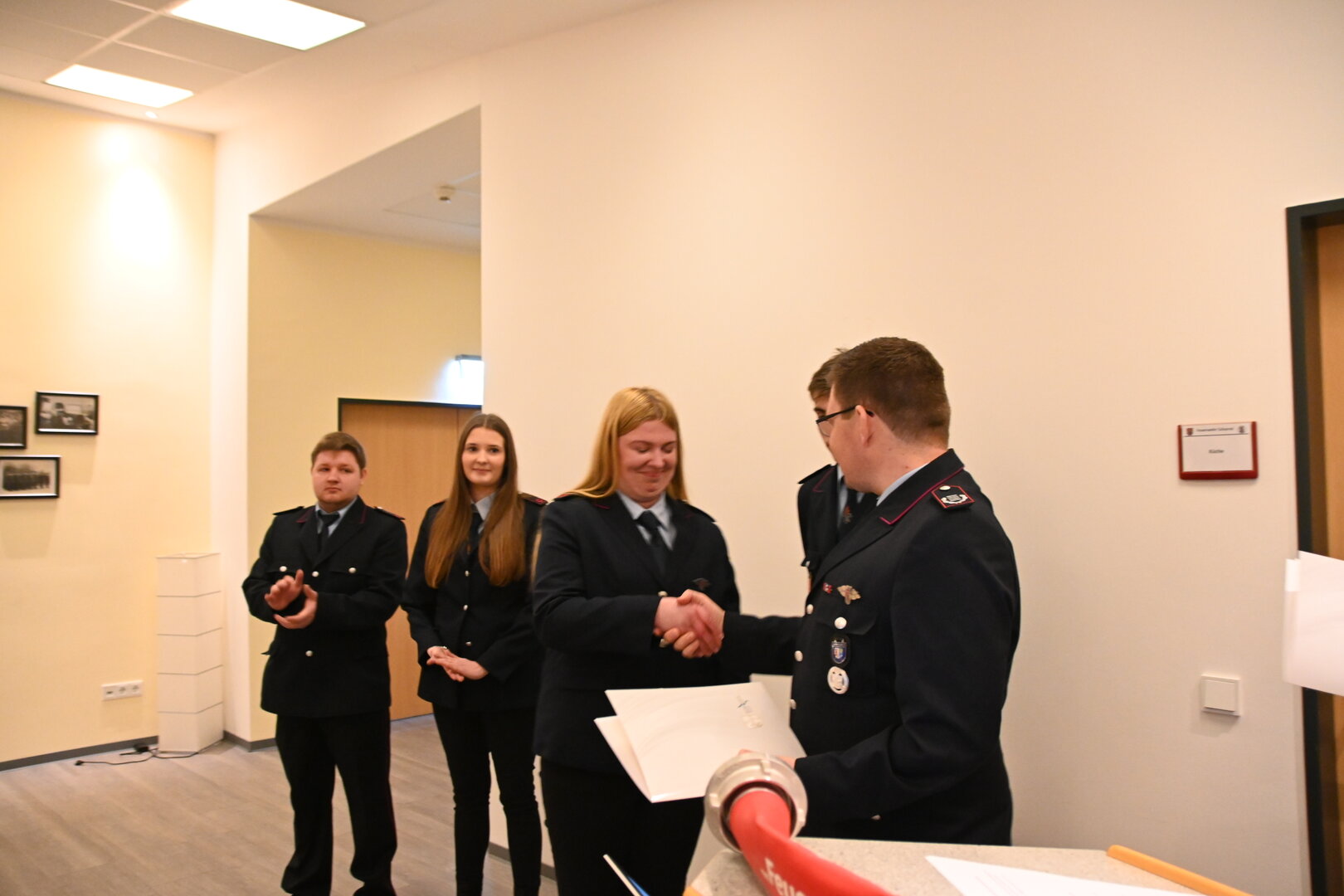Jugendfeuerwehrwartin Vera Pörschke berichtete von einem ereignisreichen Jahr für den Feuerwehrnachwuchs. Neben der Teilnahme am Pfingstzeltlager, Dorffesten und dem Martinsumzug standen auch Wettbewerbe auf dem Programm. Besonders erfreulich: Der Titel „Jugendfeuerwehrfrau des Jahres 2024“ ging an Fynn Fürup.