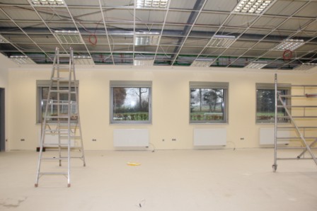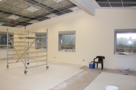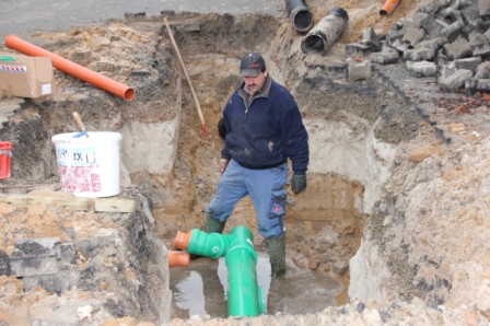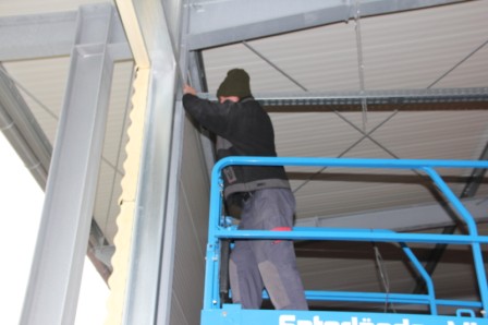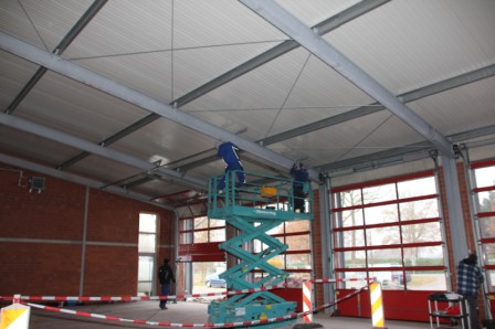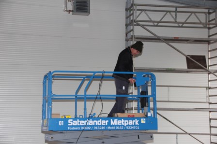 Heute am Dienstag den 25.11.14 werden in den linken Hallen schon die Absaugeanlagen montiert. In den mittleren Hallen werden die Führungsschienen für die Tore angebaut.In den linken Hallen ist der Chef (Hartmut) selber dabei die Kabelkanäle anzubauen. Im Sozialtrakt ist der Endanstrich fast erfolgt, nächster Woche soll der Fußboden gemacht werden. Im Aussenbereich wird jetzt der Wasserabfluss repariert somit kann dann auch das große Loch vor den Hallentoren geschlossen werden.