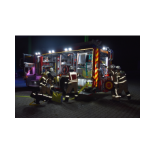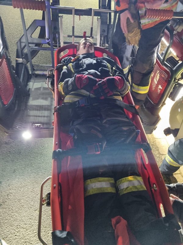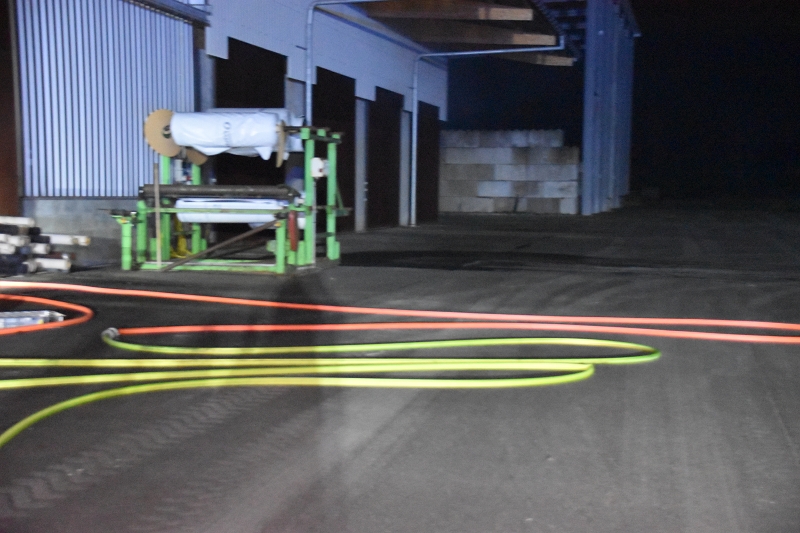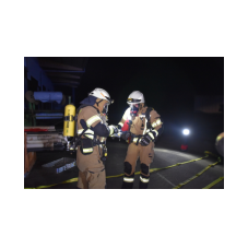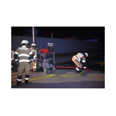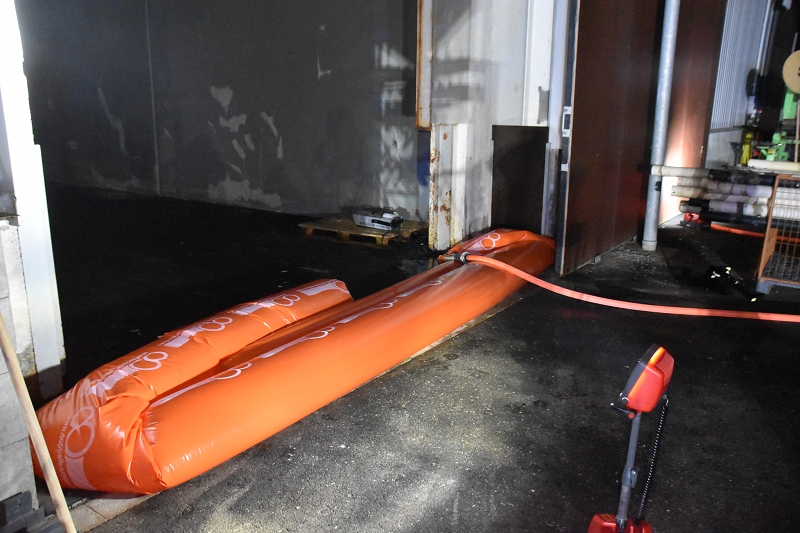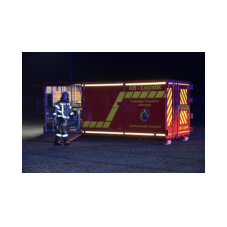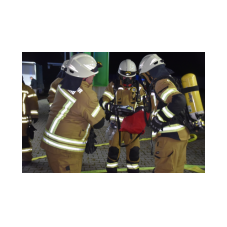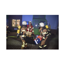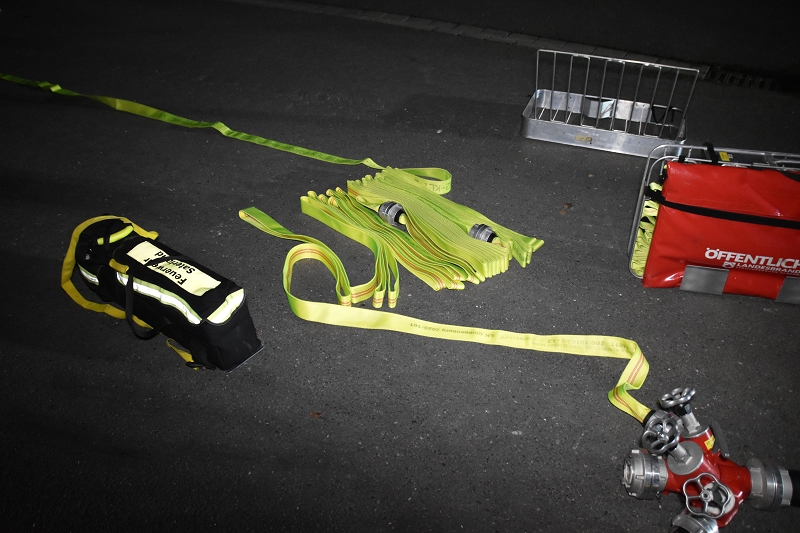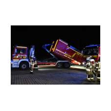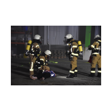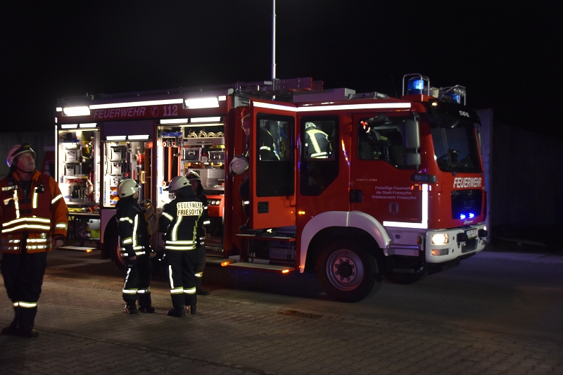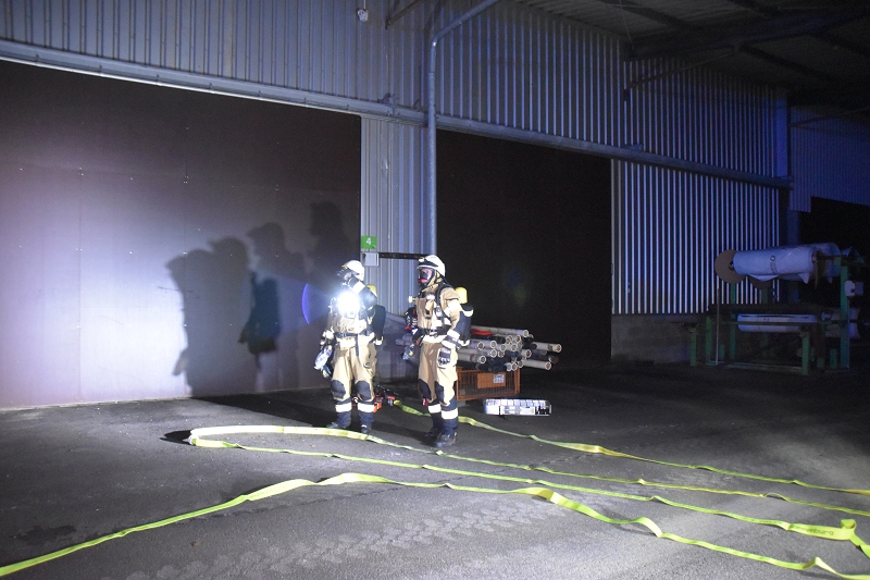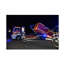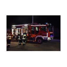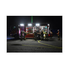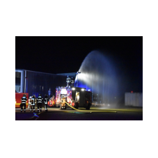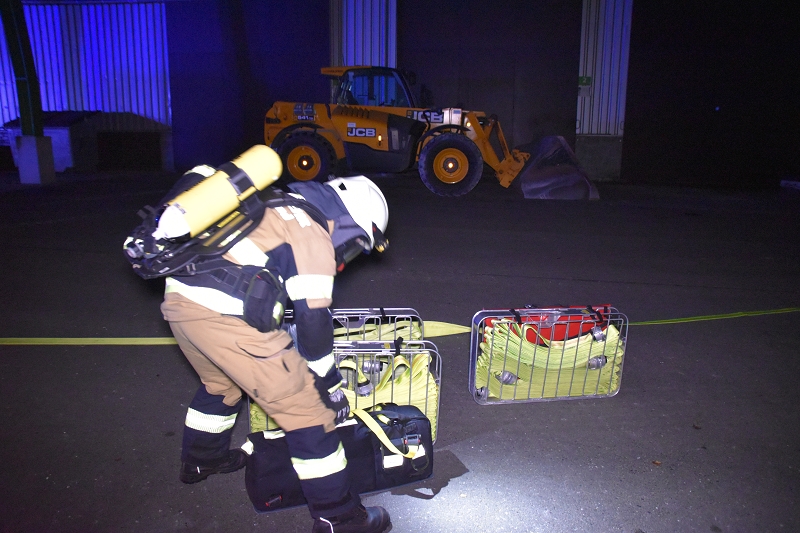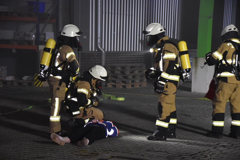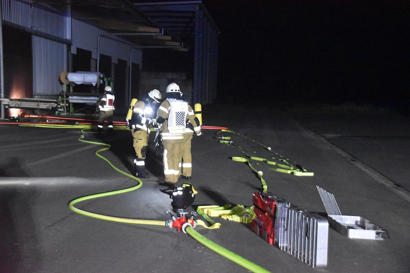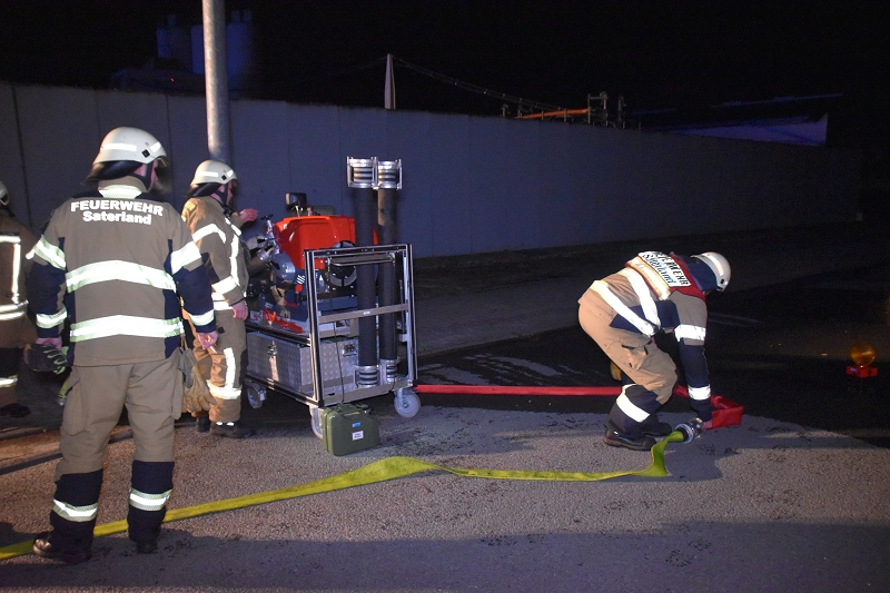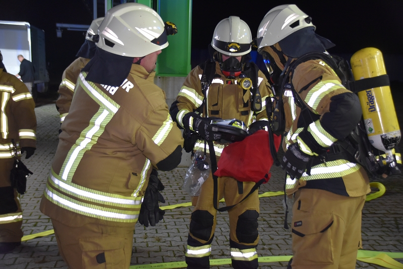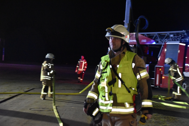 Beim Eintreffen der ersten Fahrzeuge sah man schon dichten Rauch aus den Hallen aufsteigen, unter Atemschutz wurde sofort die Menschenrettung durchgeführt. Ein Angriffstrupp holte innerhalb weniger Minuten drei Mitarbeiter aus den verqualmten Hallen. Der Rettungstrupp wartete vor der Halle um die Verletzten zu übernehmen. Diese wurden sofort an einen Sammelpunkt gebracht und vom First Responder Team versorgt. Auch die Person im Dachgeschoss wurde schnell gefunden und von den Kräften gerettet, diese Situation war sehr anspruchsvoll, da diese von oben an einer Leiter nach unten gebracht werden musste. Die beiden weiteren Personen auf der Förderbrücke wurden über die Drehleiter der Feuerwehr Friesoythe gerettet, dieses gelang den Helfern innerhalb weniger Minuten. Ein weiterer Teil der Übung war die Brandbekämpfung, da die Hydranten nicht zu öffnen waren, musste man das Löschwasser aus dem Küstenkanal holen. Mehrere hundert Meter B-Schlauch wurden zum AB- Wasser verlegt, dieser speiste dann die Löschfahrzeuge mit Wasser ein. Das neue Löschwasserrückhaltesystem was auf dem AB Logistik/ Rüst der Feuerwehr Scharrel verlagert ist kam bei diesem Einsatz auch zu tragen. Das Schlauchsystem der Feuerwehr Scharrel das mit Wasser aufgefüllt wird, verhindert ein Auslaufen des Löschwassers aus der Halle. Um 20:30 Uhr hieß es dann für alle eingesetzten Kräfte, Übungsende. Gemeindebrandmeister Hartmut Hanekamp bedankte sich bei allen Kameradinnen und Kameraden für ihr Engagement und der guten Zusammenarbeit auch über die Grenzen des Saterlandes. Ein besonderer Dank ging an RWG Ammerland-OstFriesland und an den Standortverantwortlichen Frank Lepper für die Bereitstellung der Hallen.