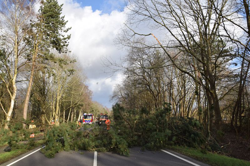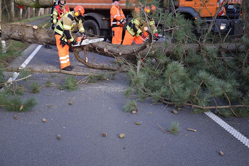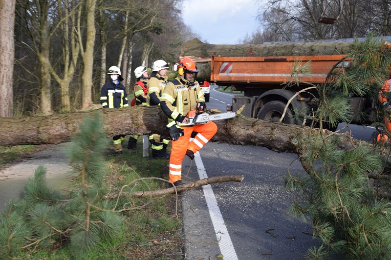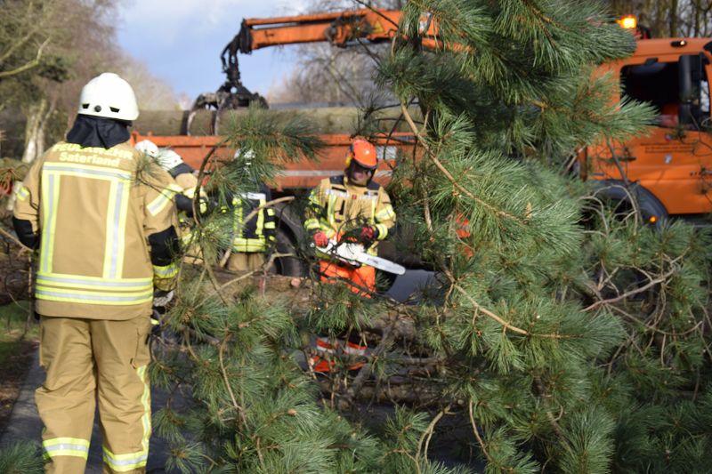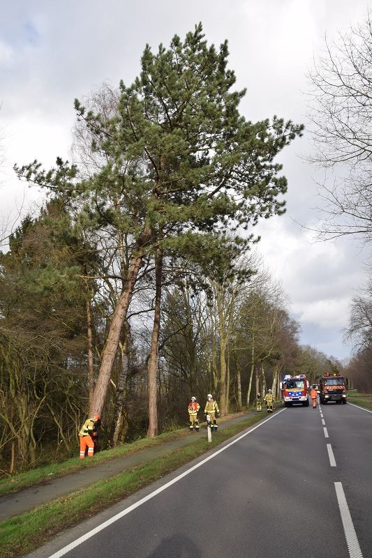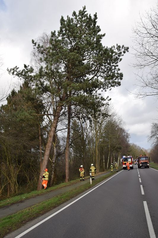 Sedelsberg – Saterland (LK Cloppenburg) – Am Donnerstag, den 17.02.2022 wurden die Einsatzkräfte der Feuerwehr Scharrel gegen 14:38 Uhr zur Hüllener Straße/ B401 gerufen. Direkt an der B 401 drohte ein 14 m hoher Baum auf die Fahrbahn zu kippen. Da man den Baum aber bei laufendem Verkehr nicht schneiden konnte, bat man die Polizei und die Straßenmeisterei zur Verstärkung. Sowie die Vollsperrung der B 401 stand konnten die Kameraden der Feuerwehr den Baum fällen, mit Manpower wurde der Baum so schnell wie möglich von der Fahrbahn entfernt, so dass der Verkehr innerhalb von 30 min wieder laufen konnte. Im Einsatz war die Feuerwehr Scharrel, Polizei und die Straßenmeisterei.