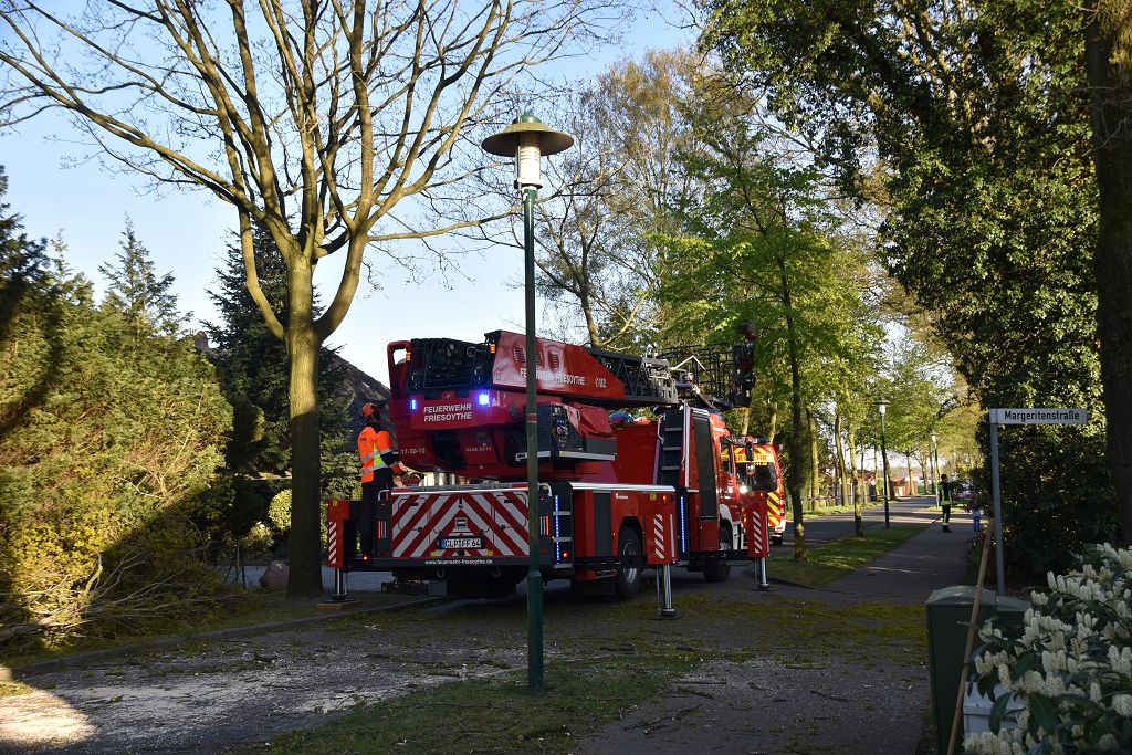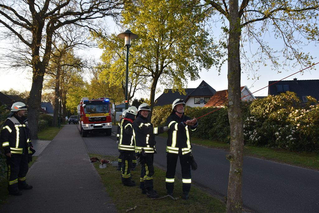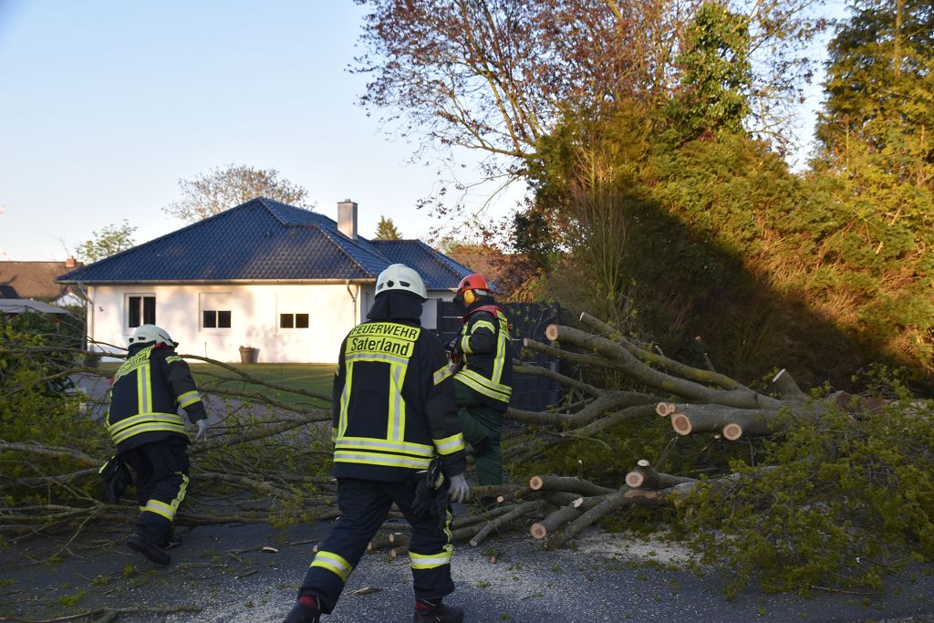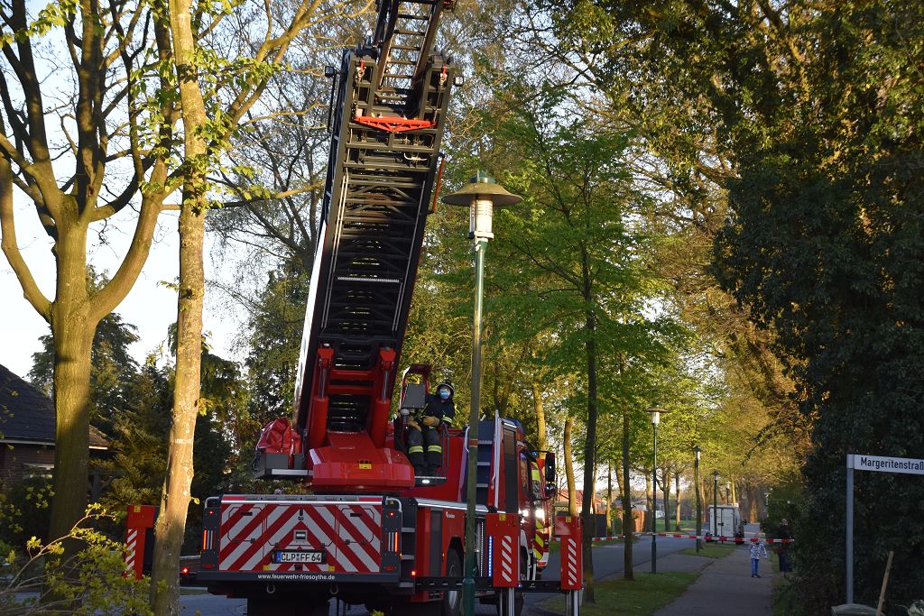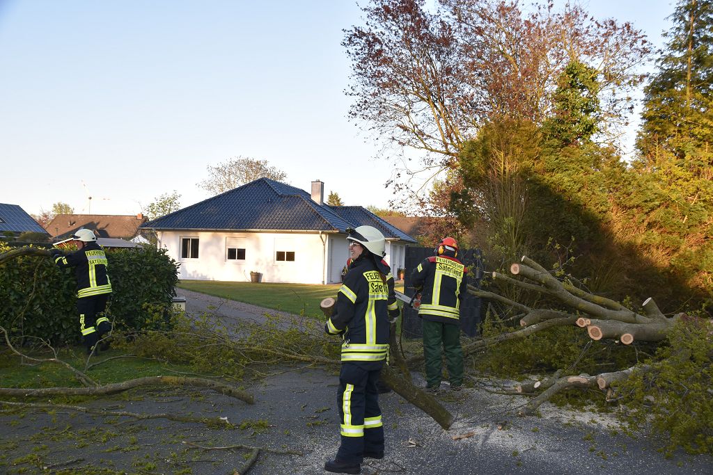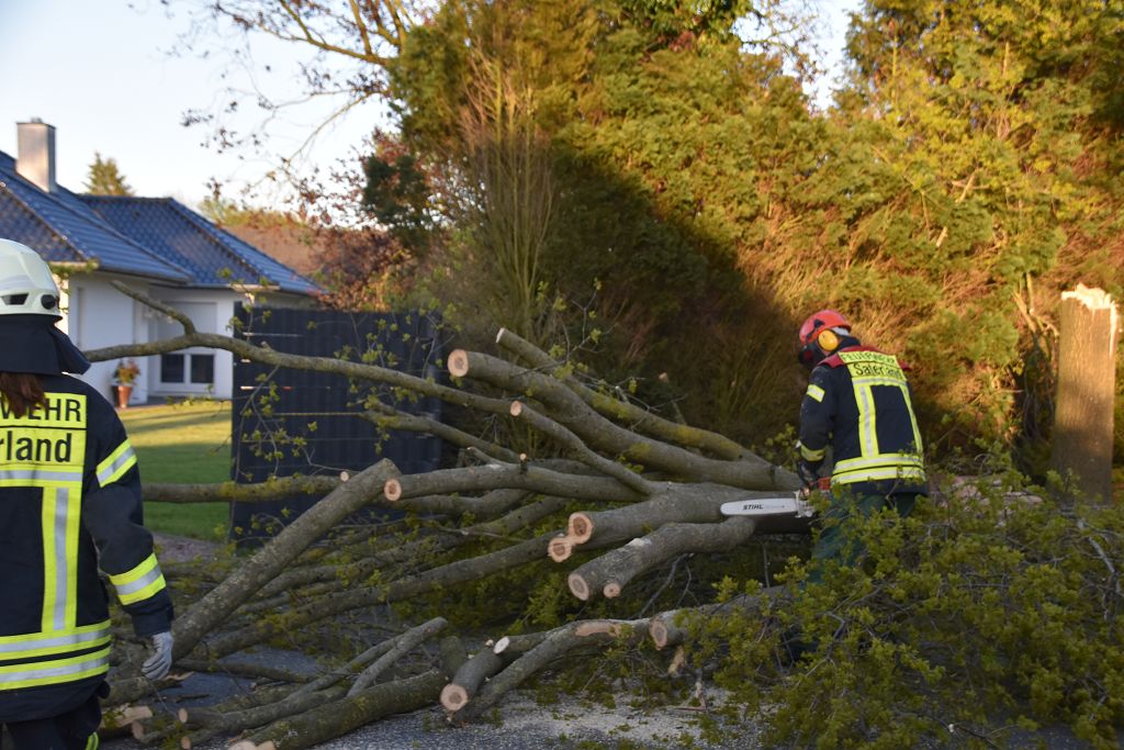 Scharrel/ Saterland (LK Cloppenburg) – Am Dienstagabend gegen 18:28 Uhr wurde die Feuerwehr Scharrel zur Heselberger Straße nach Scharrel gerufen. Hier drohte ein etwa 18 m hoher Baum auf die Straße zu fallen. Da schon ein Teil des Baumes auf der Straße lag, wurde sofort vor Ort beschlossen den kompletten Baum zur Sicherheit zu fällen. Auf Grund der Höhe des Baumes wurde vom Ortsbrandmeister der FF Scharrel die Drehleiter der Feuerwehr Friesoythe angefordert. Die Heselberger Straße wurde für die Fällung des Baumes vorübergehend abgesperrt. Nach etwa zwei Stunden war der Einsatz für die Feuerwehren aus Scharrel und Friesoythe beendet.