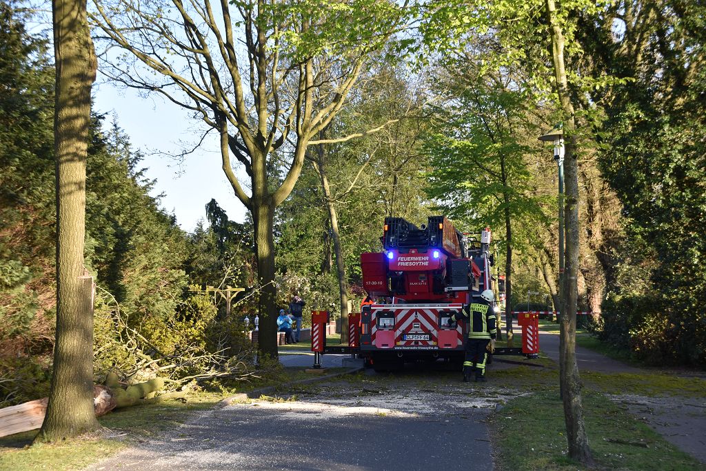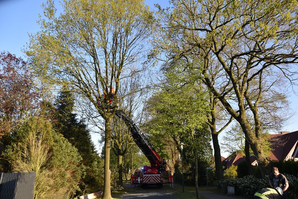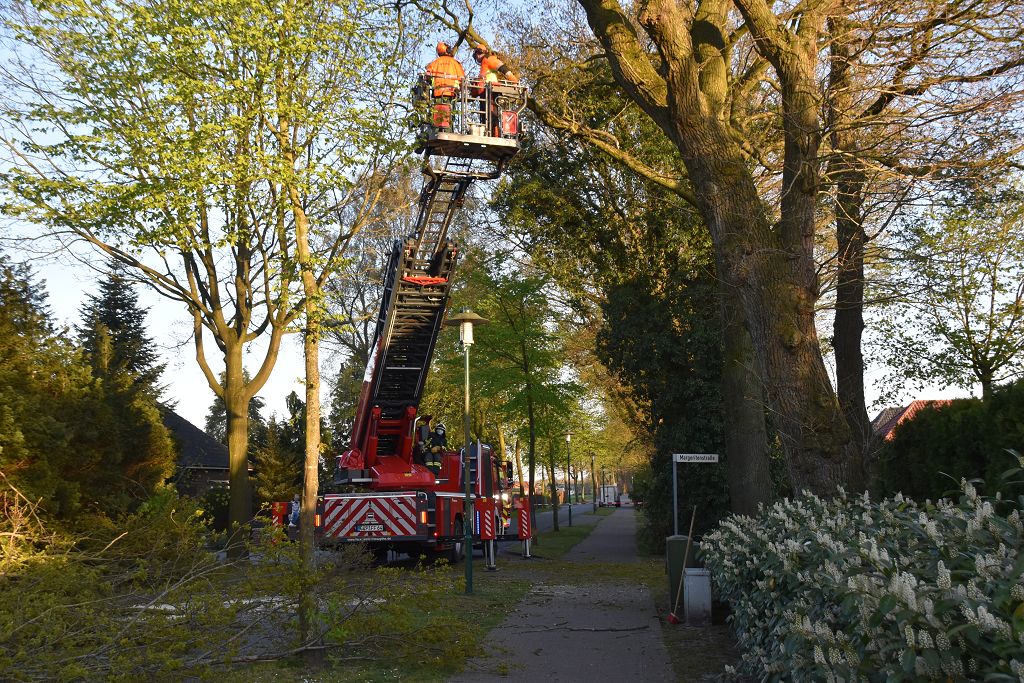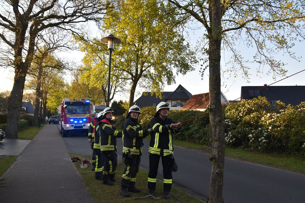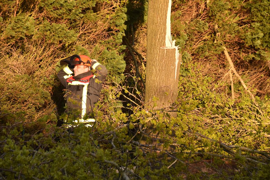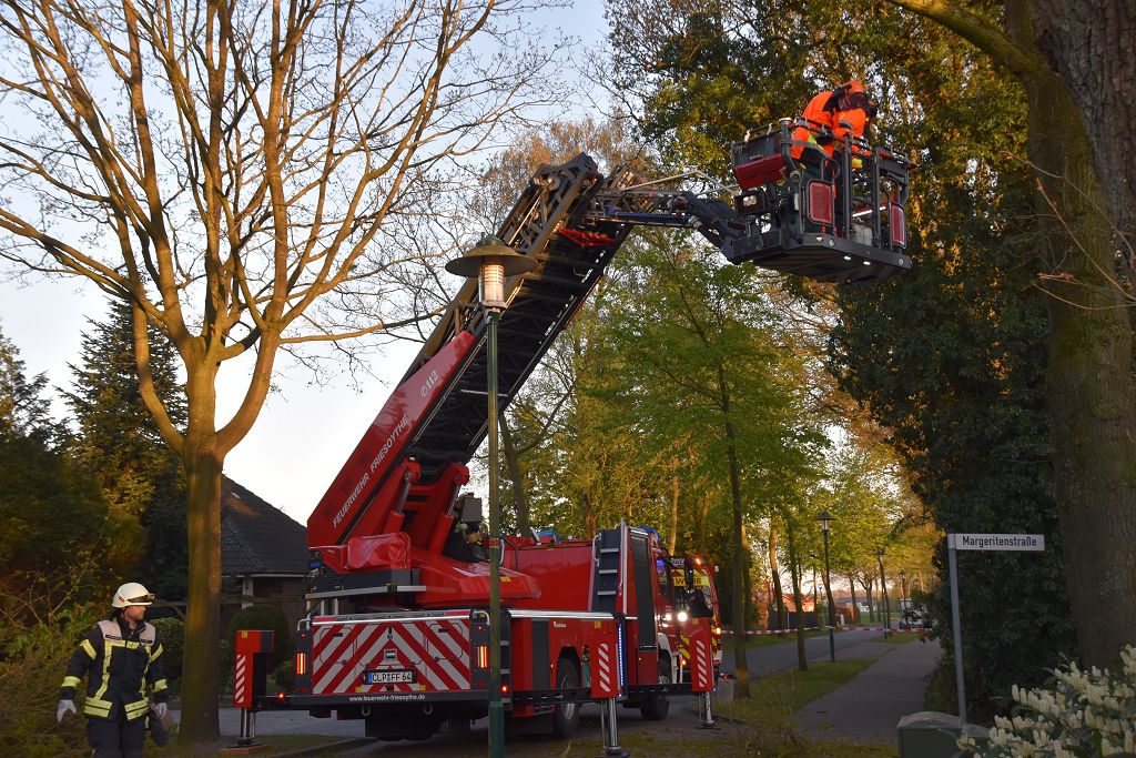 Scharrel/ Saterland (LK Cloppenburg) – Am Dienstagabend gegen 18:28 Uhr wurde die Feuerwehr Scharrel zur Heselberger Straße nach Scharrel gerufen. Hier drohte ein etwa 18 m hoher Baum auf die Straße zu fallen. Da schon ein Teil des Baumes auf der Straße lag, wurde sofort vor Ort beschlossen den kompletten Baum zur Sicherheit zu fällen. Auf Grund der Höhe des Baumes wurde vom Ortsbrandmeister der FF Scharrel die Drehleiter der Feuerwehr Friesoythe angefordert. Die Heselberger Straße wurde für die Fällung des Baumes vorübergehend abgesperrt. Nach etwa zwei Stunden war der Einsatz für die Feuerwehren aus Scharrel und Friesoythe beendet.