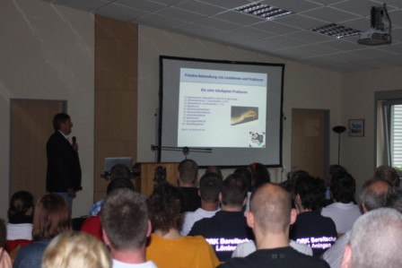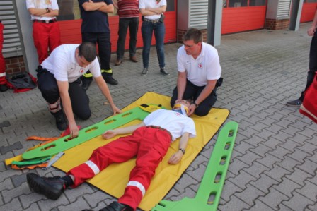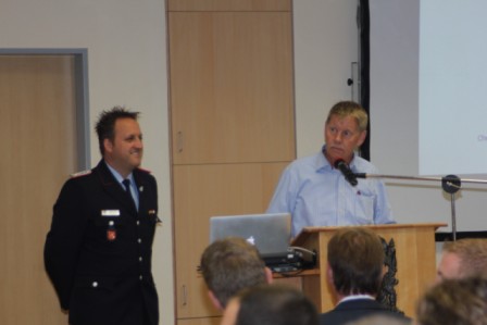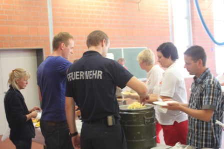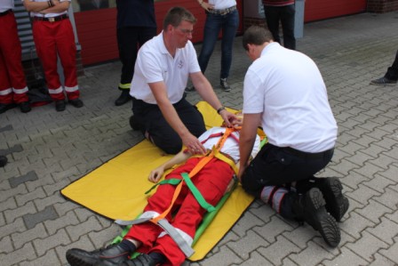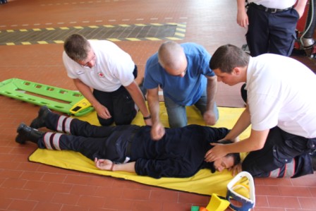 Am 31.August fand das 6. First Responder Symposium der Fachgruppe,,FR“ der Freiwilligen Feuerwehr Scharrel statt. Weit mehr als 100 Besucher bekamen von mehreren Referenten verschiedene Handlungsanleitungen für den Notfalleinsatz. Um 08:15 Uhr öffneten sich die Türen des Feuerwehrhauses in Scharrel für die geladenen Gäste. Jetzt hatte man noch ein wenig Zeit um Einzuchecken und gemütlich zu Frühstücken. Um 09:30 begrüßte Benno Hermes, Vorsitzender des Fördervereins der FF Scharrel die Gäste und die angereisten Referenten. Stefan Vocks, Ortsbrandmeister der FF Scharrel begrüßte ebenfalls alle Teilnehmer und wünschte allen gute Vorträge und gutes Gelingen. Gegen 09:40 eröffnete Dr.med. Michael Renno Chefarzt am St.Marien-Hospital Friesoythe das Symposium mit dem Vortrag ,, Primäre Behandlungen von Luxationen und Frakturen“ . Um 10:50 Uhr sprach Stefan Abshof, Kreisausbilder des Kreisfeuerwehrverbandes Cloppenburg über die Gefahren und des Verhaltens der Einsatzleute am Einsatzort bei CO Vergiftungen. Polizeioberkommissar Hermann – Josef Böckmann berichtete im Anschluss über den Einsatzort als Tatort. Was darf man und was sollte man nicht am Einsatzort verändern, außerdem erzählte er einige Abläufe seiner Arbeit was sehr interessant war. Nach der Mittagspause gegen 13.30 Uhr gab es Theorie und Praxis von Spineboards/CombiCarrier. Referenten waren hier Frau Dr. med. Almut Opolka ( Anästhesie und Rettungsmedizin), Wolfgang Oltmanns, Leiter des Rettungsdienst DRK Cloppenburg. Nach der Theorie wurde ein Workshop mit dem Umgang von Spineborads und den CombiCarrier abgehalten. Hier wurden verletzte Personen aus dem PKW, Bulli und aus dem LKW mit Hilfe von einer Rettungsbühne gerettet. Auch hier wurden die neuen Hilfsmittel benutzt um die verunfallten Personen zu retten, bei denen eine Verletzung der Wirbelsäule nicht auszuschließen ist. Gegen 16:00 Uhr wurde das 6.First Responder Symposium in Scharrel mit vollem Erfolg beendet. Gäste kamen aus Löningen, Garrel, Friesoythe, Markhausen, Apen, Alhorn, Jaderberg, Oldenburg, Barßel, Scharrel und Ramsloh. Diese setzen sich zusammen aus DRK, First Responder, Ehrenamtlich, Amtliche und Feuerwehr. Die Fachgruppe First Responder Scharrel möchte sich hier noch einmal recht herzlich Bedanken für das erscheinen beim Symposium 2013 in Scharrel.