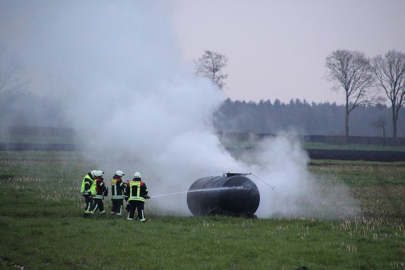 Saterland/ Scharrel – Am Freitag, den 05.04.19 wurde die Feuerwehr Scharrel und Ramsloh gegen 18:44 Uhr zu einem vermeintlichen Öltankbrand nach Scharrel - Bätholt gerufen. Beim Eintreffen der Kameraden aus Scharrel wurde aber gleich festgestellt das in dem Ölfass kein Öl, sondern Gartenabfälle brannten. Das Ölfass stand auf einem Feld, wie die Gartenabfälle in Brand geraten sind ist noch Unklar. Unter Atemschutz wurde innerhalb von ein paar Minuten der Brand gelöscht. Die Feuerwehr aus Ramsloh brauchte bei diesem Einsatz nicht eingreifen. Im Einsatz waren die Feuerwehren aus Scharrel und Ramsloh, sowie die Polizei.