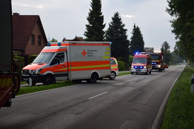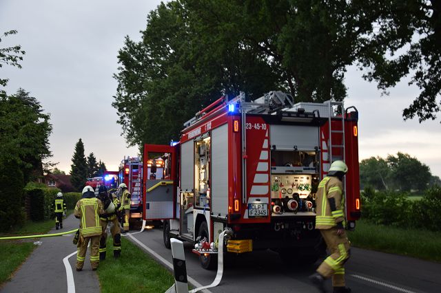 Ramsloh (LK Cloppenburg) – Am Mittwoch, 08.06.2022 gegen 05:45 Uhr wurden die Feuerwehren aus Ramsloh und Scharrel zur Elisabethfehner Straße gerufen. Laut Einsatzmeldung der Großleitstelle Oldenburger Land wurde ein Dachstuhlbrand gemeldet. Beim Eintreffen der ersten Einsatzkräfte sah man schon dichten Rauch aus dem Gebäude aufsteigen. Sofort machten sich die ersten Angriffstrupps bereit um eine Personenrettung durchzuführen. Unter Atemschutz wurde das Gebäude nach Personen abgesucht, eine Person wurde im Erdgeschoss des Wohnhauses gefunden und sofort dem Rettungsdienst übergeben. Ein weiterer Trupp löschte den Brandherd, der vermutlich im Flur ausgebrochen war. Weitere Kräfte setzten Hochdrucklüfter ein, um das Wohnhaus schnellstens rauchfrei zu machen. Auch der Energieversorger EWE war vor Ort und schaltete das Haus vom Strom ab. Im Einsatz waren die Feuerwehren aus Ramsloh und Scharrel 11 Fahrzeugen und ca.70 Einsatzkräften. Sowie die Polizei, RTW, NEF (Notarzt) und der Energieversorger EWE.