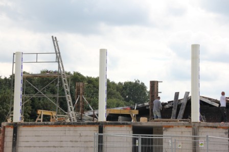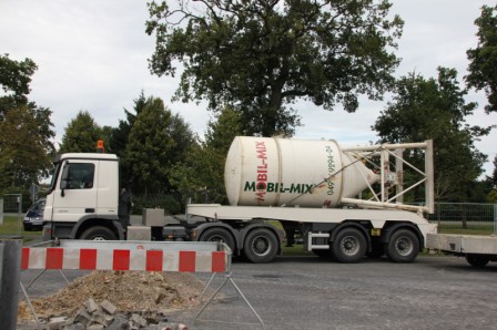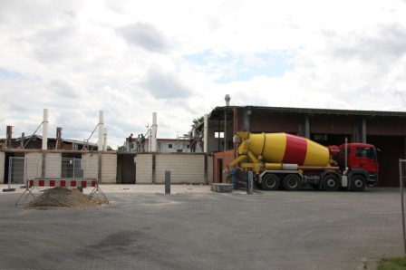 Am Freitag den 22.August 2014 lief der erste Beton für den Neubau des Feuerwehrhauses nach dem Großbrand vom 05.Oktober 2013. Die Betonsäulen wurden heute gegossen, dass der Stahlbauer die Halle errichten kann. Auch ein Betonsilo wurde heute geliefert, so das die Maurer am Montag die ersten Mauern setzen können.