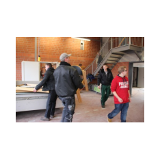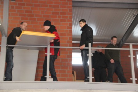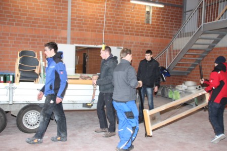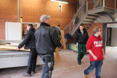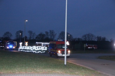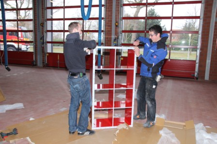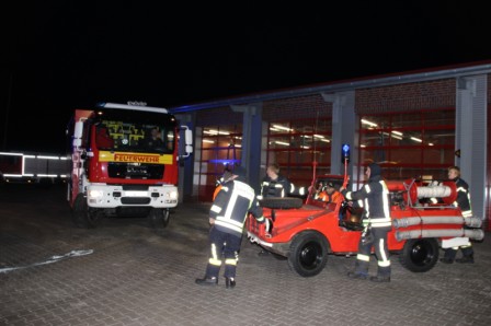 Samstag 27.12.2014 ein nicht zu vergessenes Datum. Um Punkt 13:00 Uhr trafen sich die Kameraden der Feuerwehr Scharrel an der provisorischen Feuerwache drei um gemeinsam alle Fahrzeuge, Einsatzkleidung usw. zum alten (neuen) Feuerwehrhaus zum Raiffeisendamm 20 zu bringen. Denn jetzt nach genau 448 Tagen nach dem schweren Großbrand wo die Feuerwache mit fast allen Fahrzeugen komplett abgebrannt war, hieß es:" Einzug in das komplett neu errichtete Feuerwehrhaus". Mit Begeisterung wurde an diesem Tag noch schwer gearbeitet, die Kameraden bauten noch Schränke auf, die Damen wischten noch einige Räume und dekorierten den neuen Sozialtrakt. Fahrzeug für Fahrzeug rollte zur Feuerwache und brachte Material wie z.B. Schläuche, Tische, Pumpen uvm.. Gegen 16:30 Uhr fuhren dann alle Kameraden zur provisorischen Feuerwache drei um dann gemeinsam mit allen Fahrzeugen durch den Ort Scharrel in die neugebaute Feuerwache zum Raiffeisendamm zu marschieren. Die Kameraden der Feuerwehr Ramsloh ließen es sich nicht nehmen und überraschten die Wehr Scharrel mit einem Spalier aus Fahrzeugen und Kameraden am Raiffeisendamm in Scharrel.