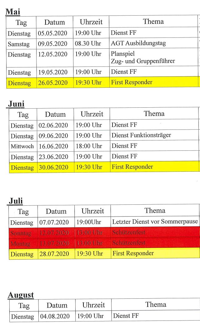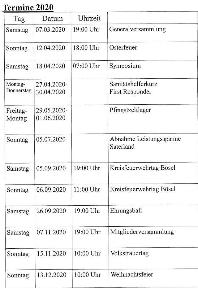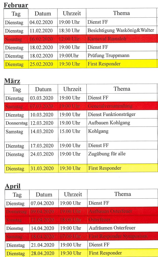 Dienstplan 2020 - Freiwillige Feuerwehr Scharrel