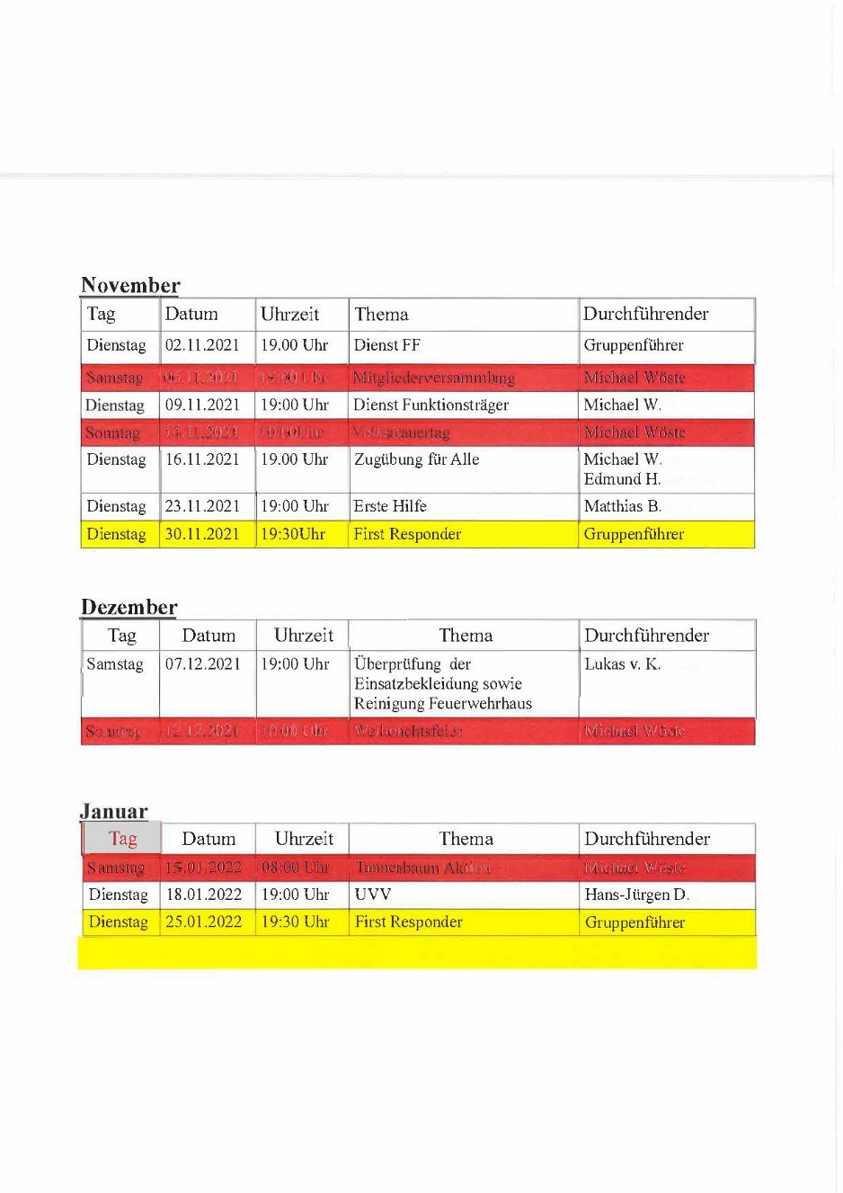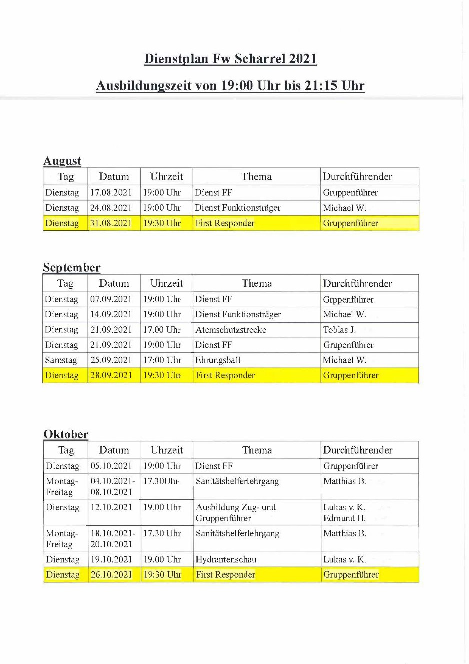 Dienstplan 2021 - Freiwillige Feuerwehr Scharrel