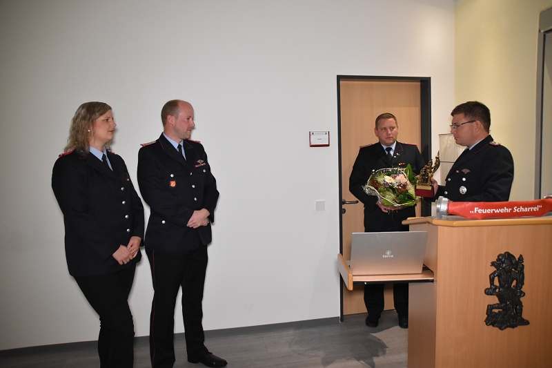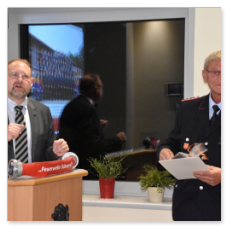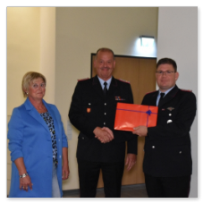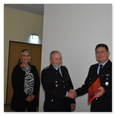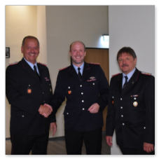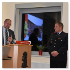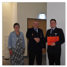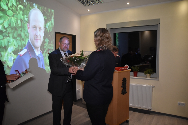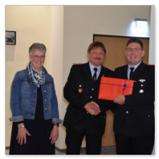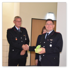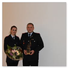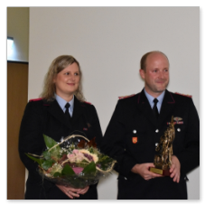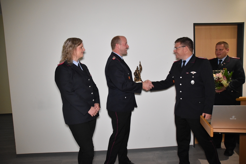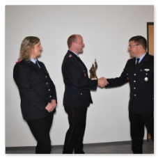 Gegen 22:30 Uhr wurde es noch einmal spannend auf dem Ehrungsball, hier wurde der Feuerwehrmann des Jahres gekürt. Alle warteten auf die Verkündung durch OBM Kajdacsy, dieser machte es diesmal sehr schnell und gratulierte Michael Wöste zum neuen Titel. Mit kräftigem Applaus gratulierte die ganze Kameradschaft.