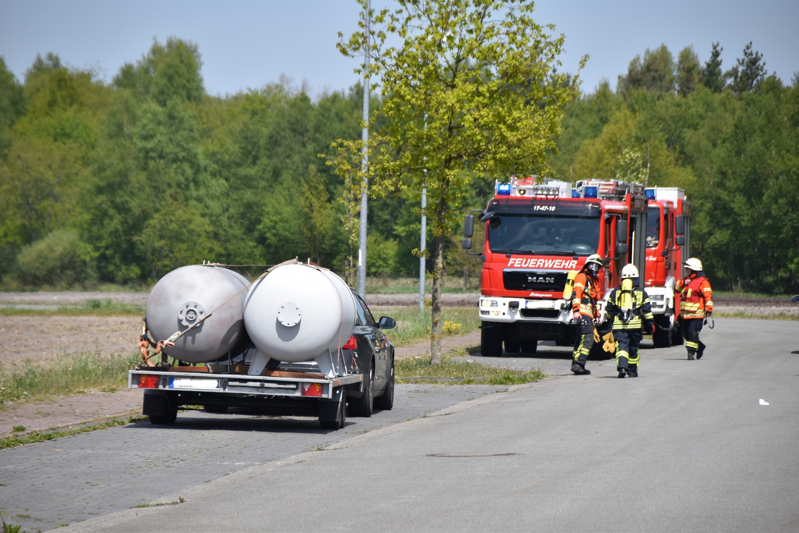 hatte auf seinem Anhänger zwei leere Gastanks geladen, die Polizei zog das