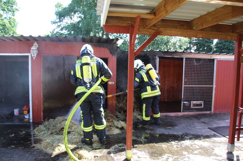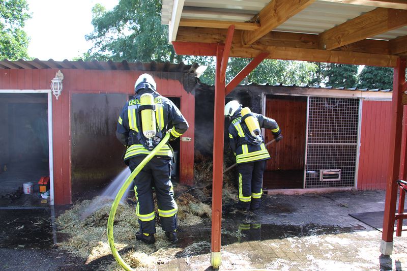 Saterland – Bollingen – Zu einem Gebäudebrand an der Nordstraße in Bollingen wurden die Feuerwehren aus Ramsloh, Scharrel und Barßel am Dienstag den, 05.06.18 gegen 16:42 Uhr gerufen. Beim Eintreffen der ersten Einsatzkräfte sah man schon das ein Heustall von einer Größe 1,20m mal 2,00m Feuer gefangen hatte. Unter Atemschutz wurde das Feuer mit zwei C-Rohren gelöscht. Ein übergreifen auf anderer Gebäudeteile wurde somit verhindert, Personen kamen dabei nicht zu schaden. Im Einsatz waren die Feuerwehren aus Ramsloh, Scharrel und Barßel, DRK und Polizei.