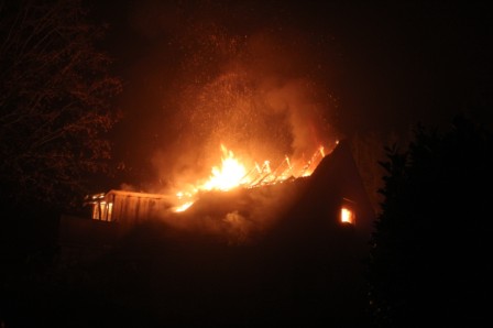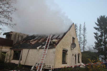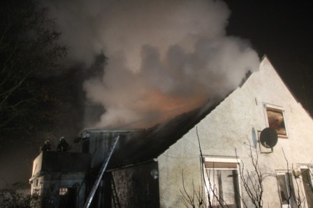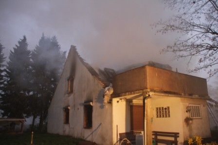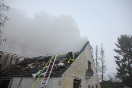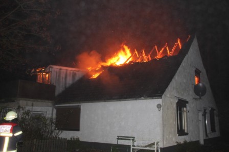 Zu einem Wohngebäudebrand nach Ramsloh am Hoheberg wurden am Freitagmorgen gegen 06:11 Uhr die Feuerwehren aus Ramsloh, Scharrel und Langholt (Ostfriesland) gerufen. Beim Eintreffen der Feuerwehren schlugen schon die Flammen aus dem Dachgeschoss des Hauses. In kürzester Zeit fraßen sich die Flammen aber schon durch die Decke in das Erdgeschoss. Sofort wurde die Wasserversorgung sichergestellt, unter Atemschutz wurde dann der Brand gelöscht. Personen wurden zum Glück nicht verletzt. Im Einsatz waren die Feuerwehren aus Ramsloh, Scharrel und Langholt (Ostfriesland), sowie RTW und Polizei.