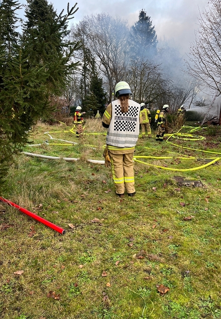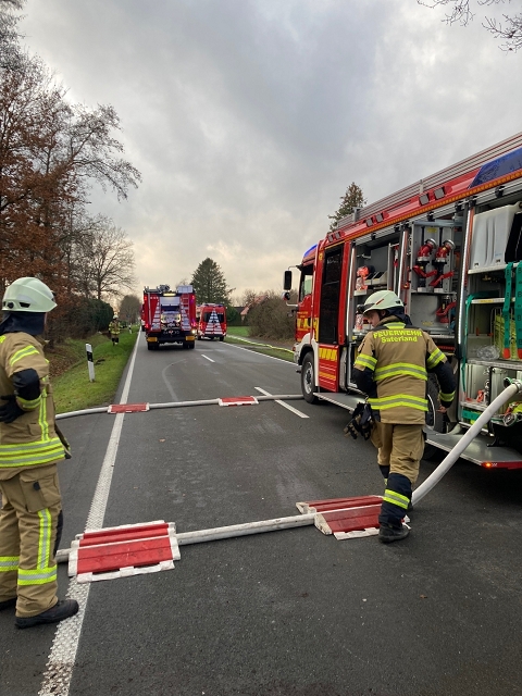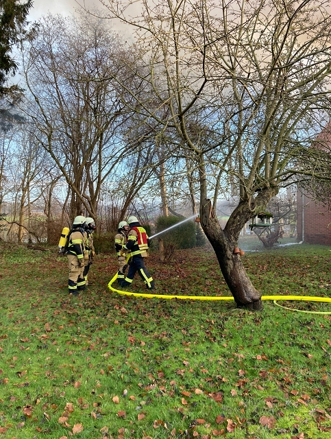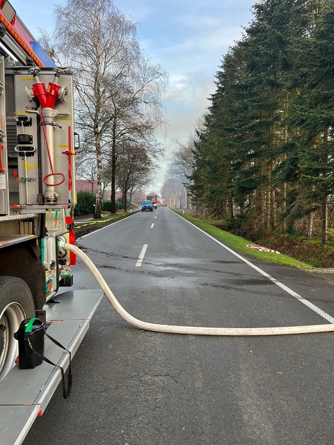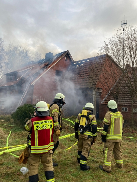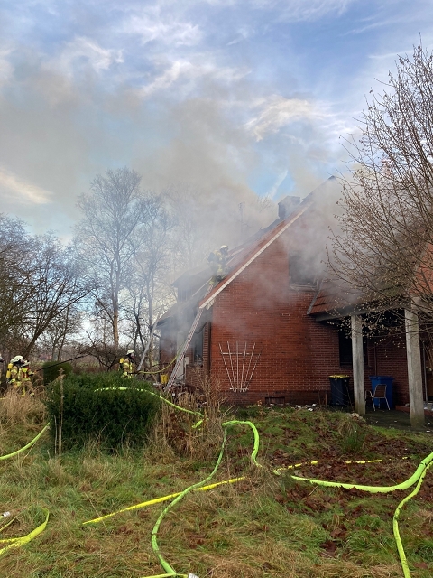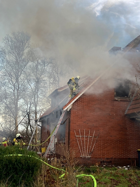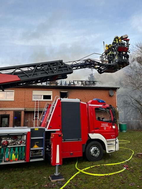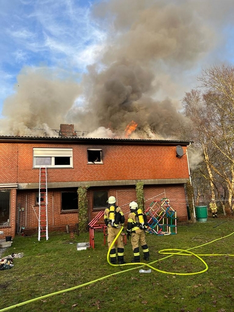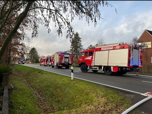 Ramsloh (LK Cloppenburg) – Zu einem Gebäudebrand wurden die Feuerwehren aus Ramsloh, Scharrel und die Drehleiter der FF Friesoythe am 22. Dezember 2022 gegen 14:04 Uhr nach Ramsloh zum Langholter Weg gerufen. Beim Eintreffen der Einsatzkräfte stand das Gebäude schon in Vollbrand. Die Löscharbeiten unter Atemschutz erstreckten sich von der Vorder- und Rückseite um das Feuer so schnell wie möglich zu bekämpfen. So musste auch die Drehleiter der FF Friesoythe eingesetzt werden. Im Pendelverkehr wurde weiteres Löschwasser von der Hauptstraße/ Langholter Weg geholt. Ein Bewohner berichtete zwischenzeitlich, dass sich seine Frau noch im Haus aufhalten würde. Aufgrund des starken Feuers, war es den Einsatzkräften nicht möglich das Gebäude zu betreten. Im Laufe des Einsatzes konnte die Bewohnerin leider nur noch tot von den Einsatzkräften geborgen werden. Der Langholter Weg war für die Löscharbeiten komplett gesperrt. Im Einsatz waren die Feuerwehren aus Ramsloh, Scharrel und Friesoythe, RTW, EWE, Polizei sowie das Kriseninterventionsteam.