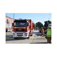 sich die Stapler und beschädigen die Gasleitung eines Fahrzeugs, welches sich