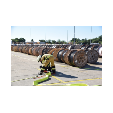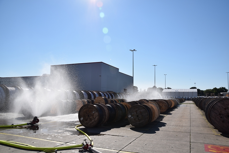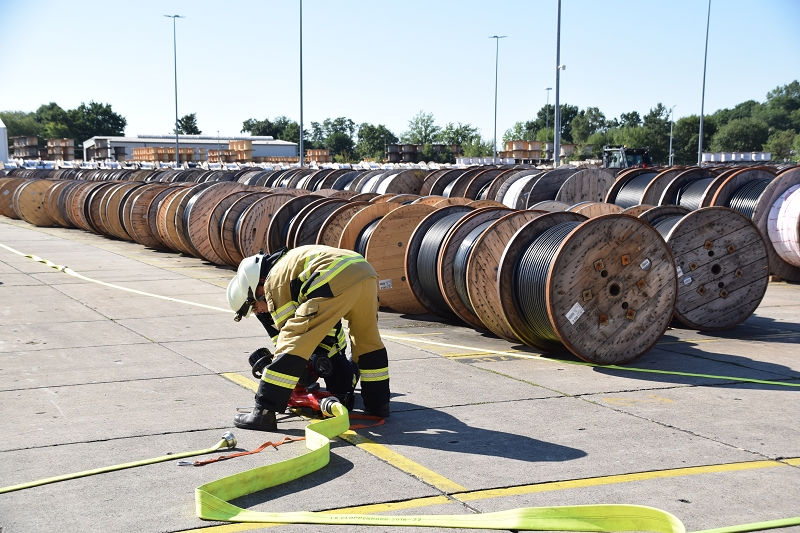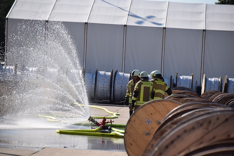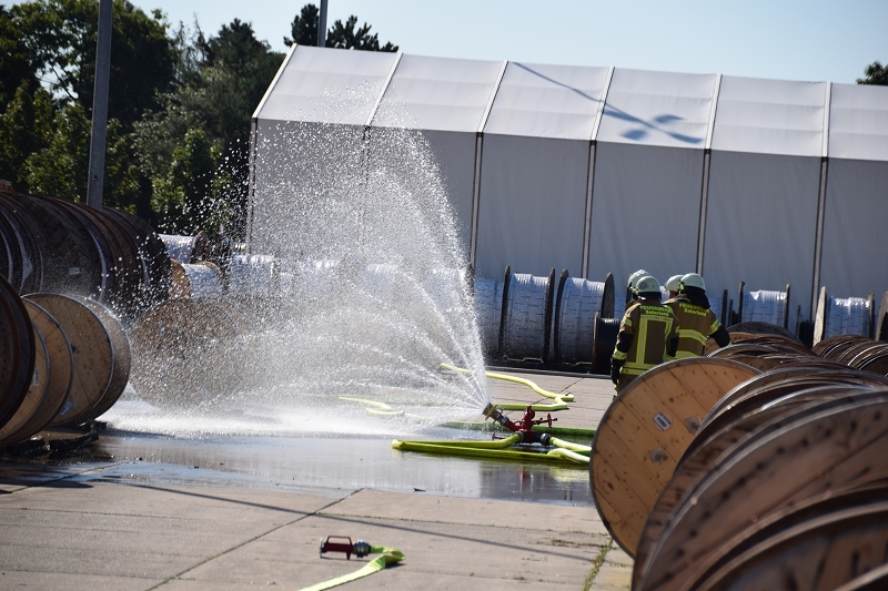 die hölzernen Kabeltrommeln über. Der Brand der Kabeltrommeln breitet sich