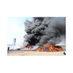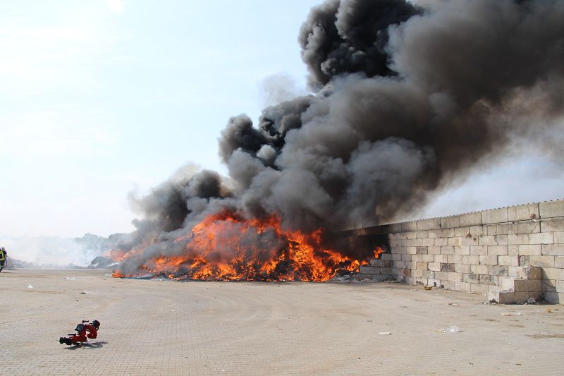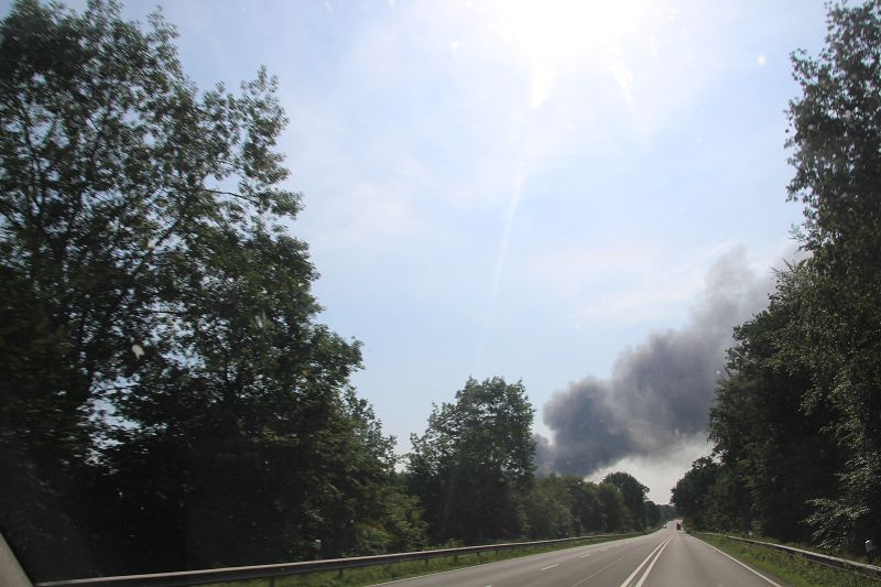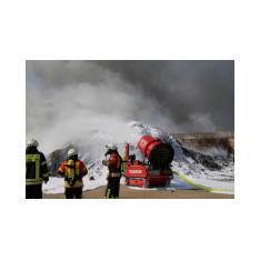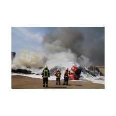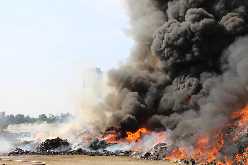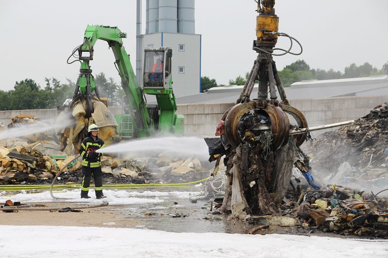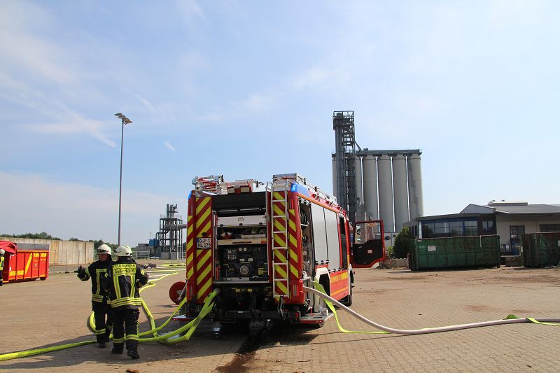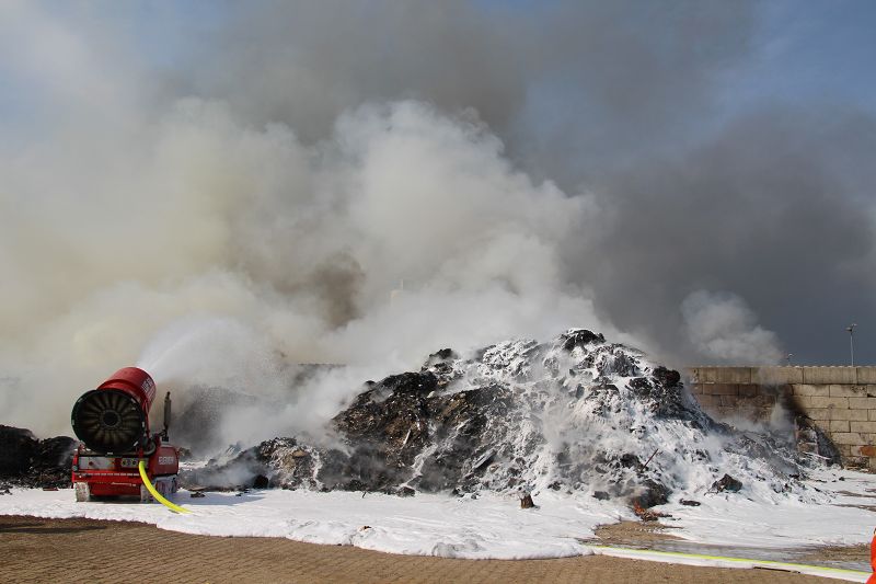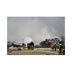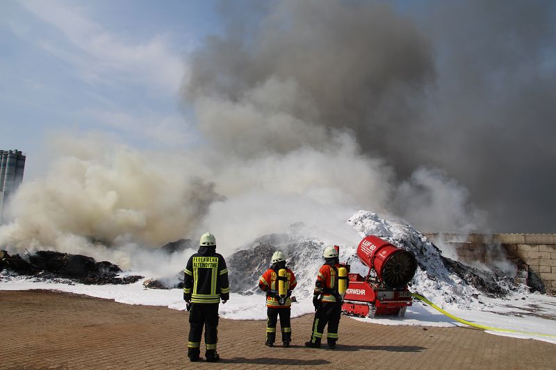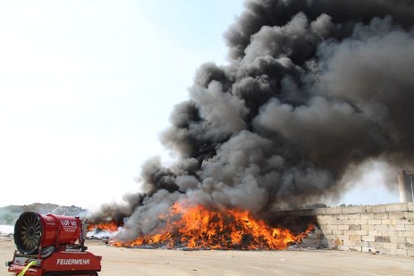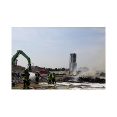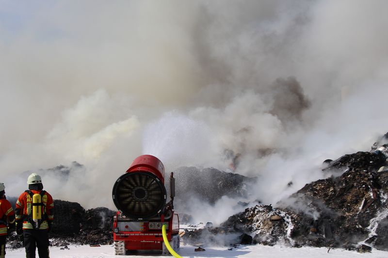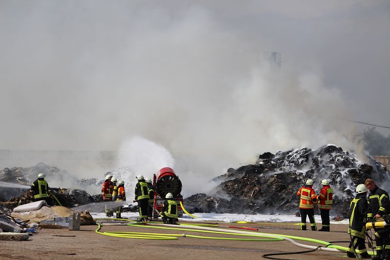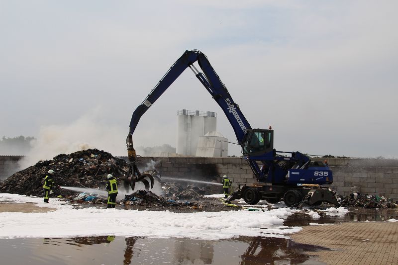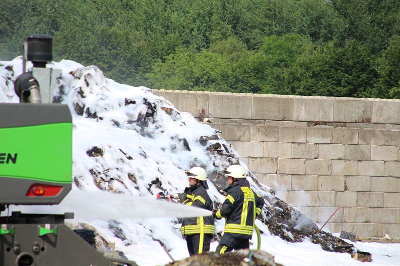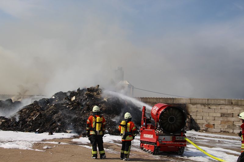 Saterland – Sedelsberg – LK Cloppenburg – Zu einem Großbrand wurden die Feuerwehren aus Scharrel, Ramsloh, Friesoythe, Gehlenberg, Markhausen und Altenoythe, die LUF Gruppe, der ELW 2 aus Cloppenburg, die Drohnengruppe, der ABC Dienst Cloppenburg, das DRK, Polizei und ein Polizeihubschrauber aus Rastede am 8. Juni gegen 09:52 Uhr zum C-Port nach Sedelsberg gerufen. Bereits auf der Anfahrt konnte man eine große schwarze Rauchsäule am Horizont erkennen. Beim Eintreffen sah man schon, dass ein 100m mal 30m großer Müllhaufen in Vollbrand stand. Sofort wurde der LUF 60 (Löschunterstützungsfahrzeug) bereit gemacht, weiterhin wurde die Wasserversorgung sichergestellt. Mit einigen C-Rohren und mit der Unterstützung des LUF konnte das Feuer schnell unter Kontrolle gebracht werden. Zeitweise wurde die Sedelsberger Starße von der Abfahrt C-Port bis zur Kreuzung B 401 voll für den Verkehr gesperrt. Aufgrund der starken Rauchentwicklung wurde im Radio darum gebeten, Fenster und Türen geschlossen zu halten. Die Löscharbeit zogen sich bis ca. 16:00 Uhr hin, da man die Müllhaufen Stück für Stück abtragen musste. Für die Wehrmänner der Feuerwehr Scharrel die die restlichen Ablöscharbeiten absolvierten war es eine anstrengende Arbeit, da es bei sommerlichen 29 Grad doch sehr heiß unter der Einsatzkleidung war, zudem kam natürlich auch noch die Hitze des Brandherdes. Hier musste natürlich sehr viel Getrunken werden, dafür sorgten zwei Kameraden der Wehr, sie holten erst einmal einige Kisten Wasser. Im Viertelstunden Tackt wurden die Kameraden nach und nach ausgewechselt, somit konnten die anderen Kameraden erst einmal verschnaufen. Für die Bürger bestand zu keiner Zeit eine Gefahr, Personen wurden nicht verletzt.