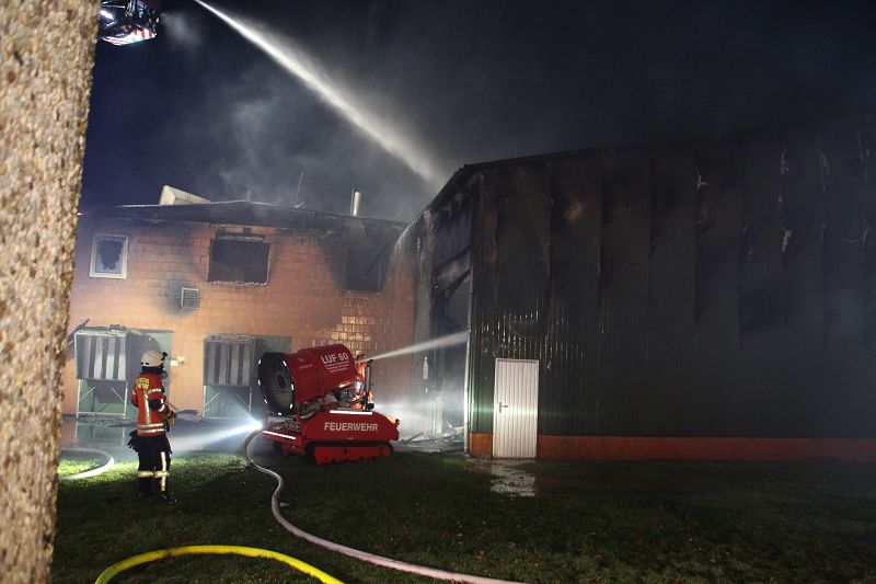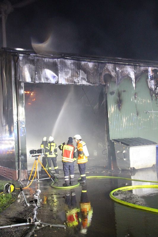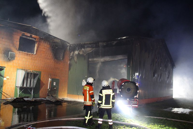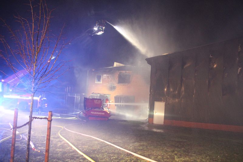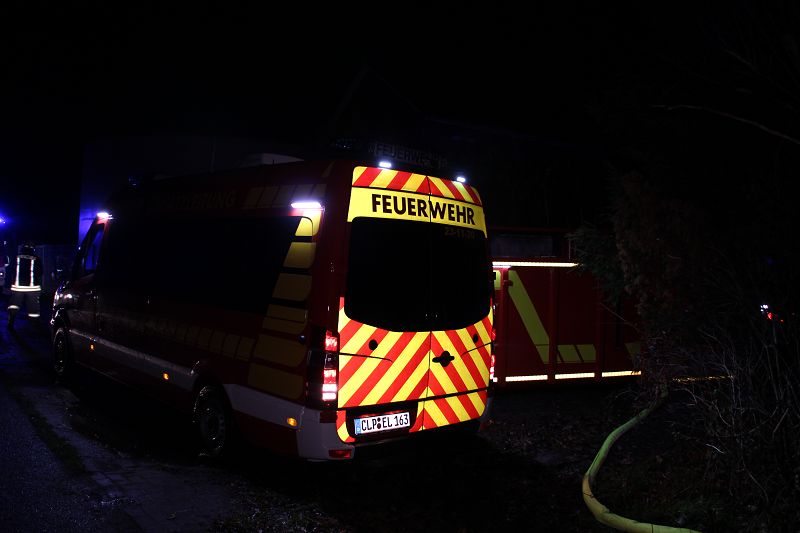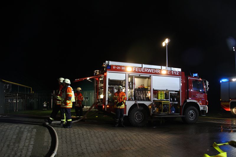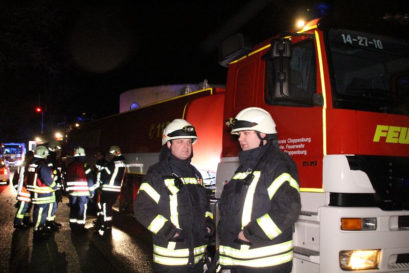 Gehlenberg- LK Cloppenburg – Zu einem Stromkastenbrand auf einer Biogasanlage in Gehlenberg wurden am Sonntag, den 09.12.2018 gegen 00:59 Uhr die Feuerwehr aus Gehlenberg alarmiert. Beim Eintreffen der Einsatzkräfte war das Generatorgebäude schon in Brand geraten, die Flammen schlugen schon durch die Decke und entzündeten die Maschinenhalle, diese stand sehr schnell in Vollbrand. Sofort wurde die Großleitstelle Oldenburg von Stadtbrandmeister Andreas Witting über die Lage informiert und forderte sofort weitere Einsatzkräfte aus Friesoythe, Markhausen, Altenoythe, Bösel, Scharrel, Cloppenburg, den kompletten ABC Zug aus dem Landkreis Cloppenburg, den ELW 2 aus Cloppenburg, die LUF Gruppe und die FTZ (Atemschutzcontainer) aus Cloppenburg an. Da ein Übergreifen des Feuers auf eine weitere Halle nicht zu verhindern war, wurde mit Hochdruck versucht mit einer Riegelstellung ein Übergreifen der Flammen auf die sechs Fermenter zu verhindern, dieses gelang hervorragend. Weiter wurde das GTLF (Großtanklöschfahrzeug) aus Cloppenburg und der AB Tank von der Feuerwehr Scharrel eingesetzt um die Wasserversorgung sicher zu stellen. An einem anliegenden Graben wurde das Wasser gestaut, um auch hier die Wasserversorgung durch die Tragkraftspritzen aufrecht zu halten. Durch einige kleinere Explosionen in den Hallen entschloss sich die Führung mit dem LUF (Lösch – Unterstützung- Fahrzeug) die Flammen in der Halle zu bekämpfen, um die Einsatzkräfte nicht in Gefahr zu bringen. Die Drehleiter aus Friesoythe wurde für das Ablöschen der Flammen über das Dach eingesetzt. Weiter wurden einige Hundert Meter B und C Schlauch zu den Einsatzfahrzeugen verlegt um diese ausreichend mit Wasser zu versorgen. Weiterhin wurde die Schnelle Einsatzgruppe des DRK und die Versorgungsgruppe des DRK zur Eigensicherung alarmiert. Der ABC Dienst aus Cloppenburg führte laufend Messungen von Schadstoffen in der Luft durch. Anwohner wurden vorsorglich gebeten, Fenster und Türen geschlossen zu halten. Rund 200 Einsatzkräfte aus dem LK Cloppenburg waren bei diesem Brand im Einsatz, Personen kamen nicht zu schaden.