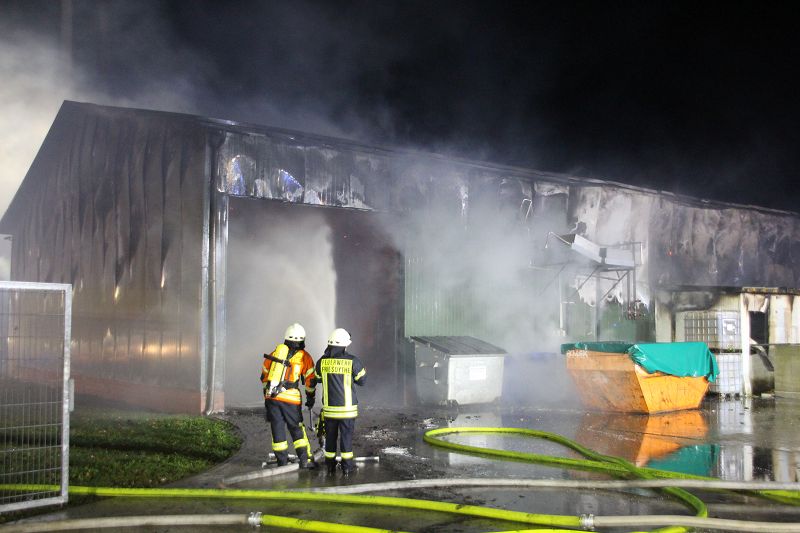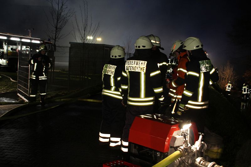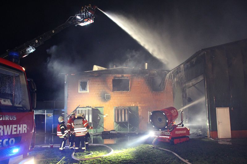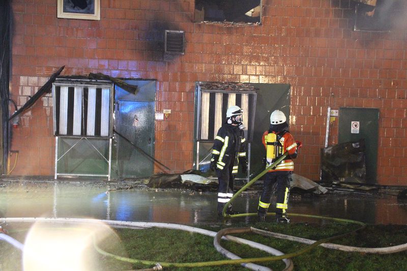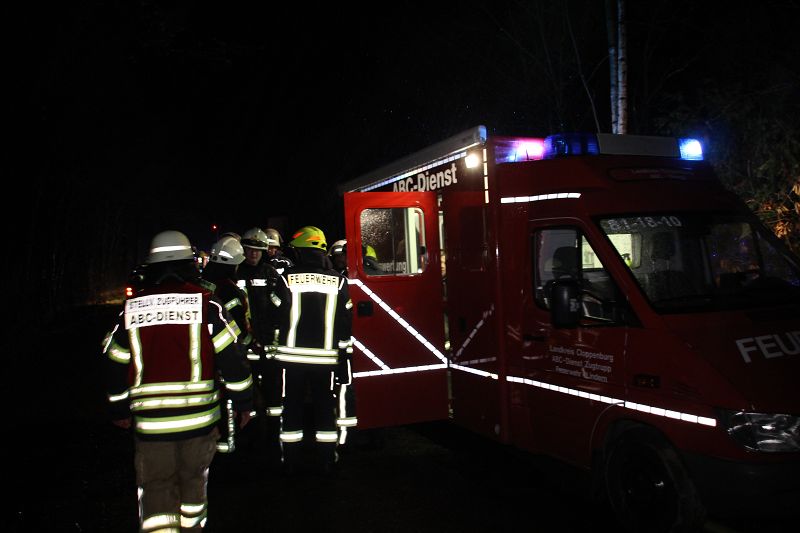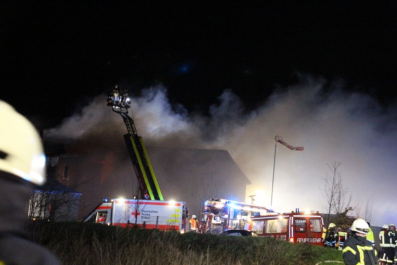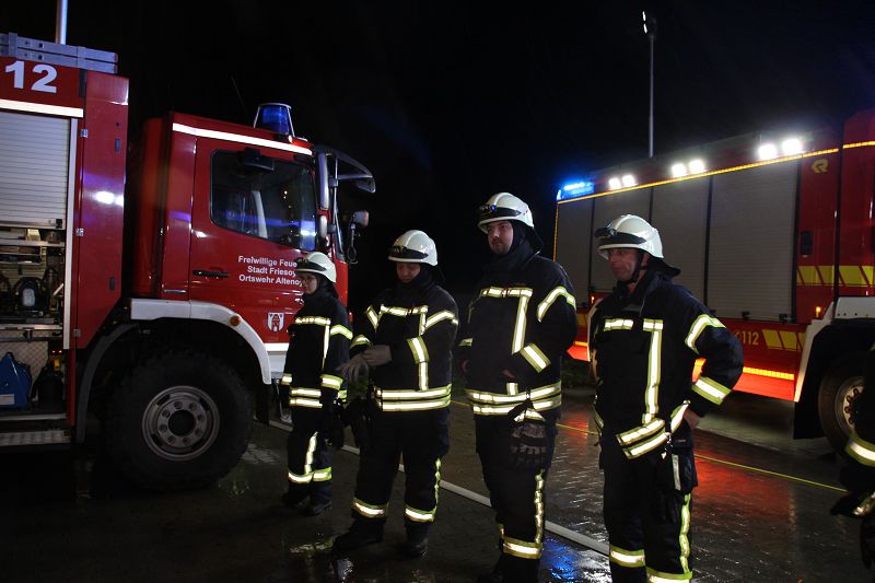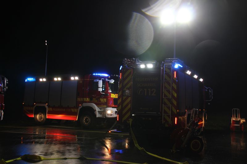 Gehlenberg- LK Cloppenburg – Zu einem Stromkastenbrand auf einer Biogasanlage in Gehlenberg wurden am Sonntag, den 09.12.2018 gegen 00:59 Uhr die Feuerwehr aus Gehlenberg alarmiert. Beim Eintreffen der Einsatzkräfte war das Generatorgebäude schon in Brand geraten, die Flammen schlugen schon durch die Decke und entzündeten die Maschinenhalle, diese stand sehr schnell in Vollbrand. Sofort wurde die Großleitstelle Oldenburg von Stadtbrandmeister Andreas Witting über die Lage informiert und forderte sofort weitere Einsatzkräfte aus Friesoythe, Markhausen, Altenoythe, Bösel, Scharrel, Cloppenburg, den kompletten ABC Zug aus dem Landkreis Cloppenburg, den ELW 2 aus Cloppenburg, die LUF Gruppe und die FTZ (Atemschutzcontainer) aus Cloppenburg an. Da ein Übergreifen des Feuers auf eine weitere Halle nicht zu verhindern war, wurde mit Hochdruck versucht mit einer Riegelstellung ein Übergreifen der Flammen auf die sechs Fermenter zu verhindern, dieses gelang hervorragend. Weiter wurde das GTLF (Großtanklöschfahrzeug) aus Cloppenburg und der AB Tank von der Feuerwehr Scharrel eingesetzt um die Wasserversorgung sicher zu stellen. An einem anliegenden Graben wurde das Wasser gestaut, um auch hier die Wasserversorgung durch die Tragkraftspritzen aufrecht zu halten. Durch einige kleinere Explosionen in den Hallen entschloss sich die Führung mit dem LUF (Lösch – Unterstützung- Fahrzeug) die Flammen in der Halle zu bekämpfen, um die Einsatzkräfte nicht in Gefahr zu bringen. Die Drehleiter aus Friesoythe wurde für das Ablöschen der Flammen über das Dach eingesetzt. Weiter wurden einige Hundert Meter B und C Schlauch zu den Einsatzfahrzeugen verlegt um diese ausreichend mit Wasser zu versorgen. Weiterhin wurde die Schnelle Einsatzgruppe des DRK und die Versorgungsgruppe des DRK zur Eigensicherung alarmiert. Der ABC Dienst aus Cloppenburg führte laufend Messungen von Schadstoffen in der Luft durch. Anwohner wurden vorsorglich gebeten, Fenster und Türen geschlossen zu halten. Rund 200 Einsatzkräfte aus dem LK Cloppenburg waren bei diesem Brand im Einsatz, Personen kamen nicht zu schaden.