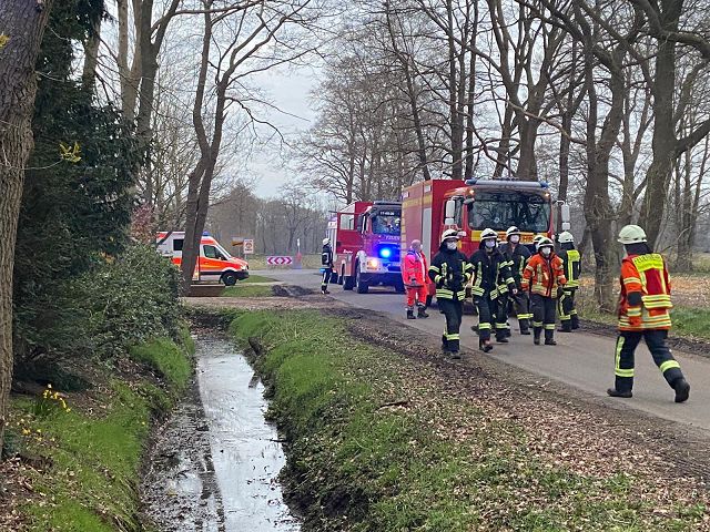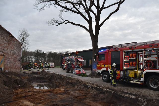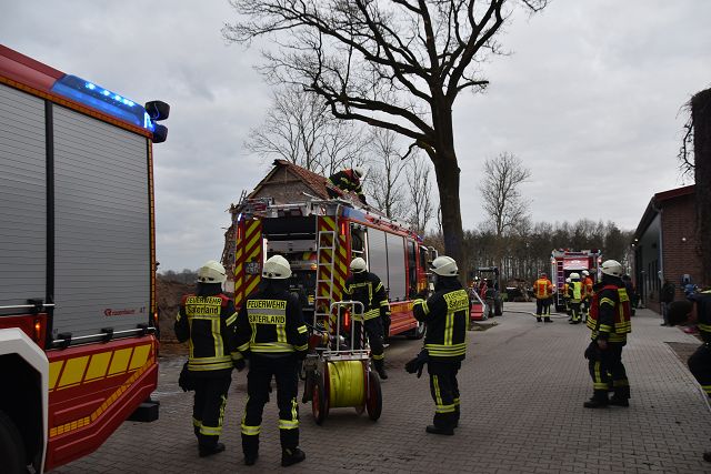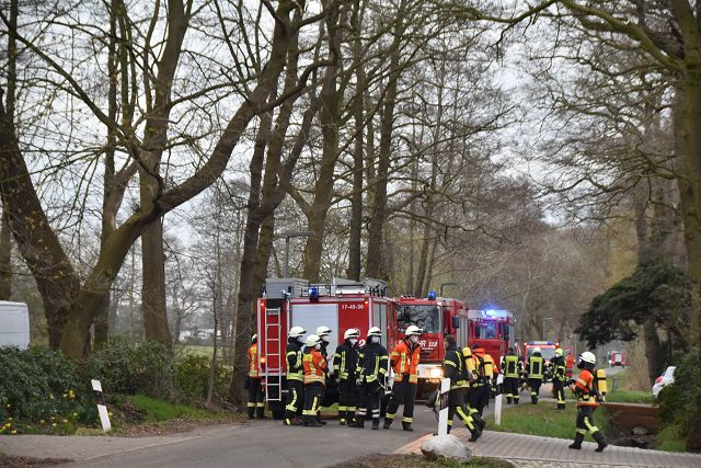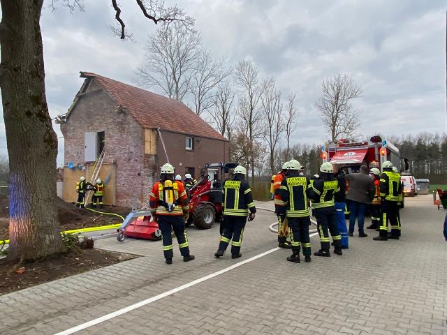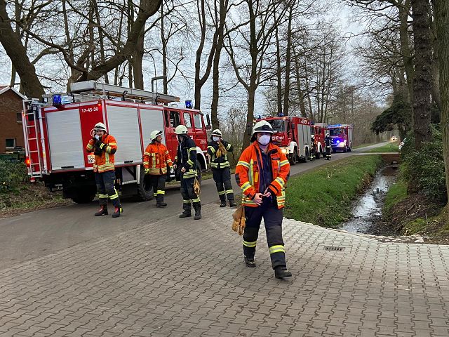 Neuscharrel (LK Cloppenburg) – Am Freitag, den 09.04.2021 gegen 06:43 Uhr wurden die Feuerwehren aus Gehlenberg, Scharrel, Friesoythe, Altenoythe, Markhausen, das Drohnenteam des Landkreises Cloppenburg, der LUF-Zug des Landkreises Cloppenburg, der ELW – 2 des Landkreises Cloppenburg, der ABC Erkunder Nord und der ABC Auswerter sowie der First Responder Gehlenberg, das DRK Friesoythe und die Polizei zu einem Großbrand (Rauchentwicklung aus einer Scheune bzw. älteres Wohnhaus) nach Neuscharrel zum Ziegeleiweg gerufen. Beim Eintreffen der ersten Fahrzeuge aus Gehlenberg und Scharrel konnte aber schnell Entwarnung gegeben werden. Aus einem älteren Wohnhaus war aus ungeklärter Ursache ein kleineres Feuer ausgebrochen. Der Brand wurde sofort von den Angriffstrupps der Feuerwehren aus Gehlenberg und Scharrel unter Kontrolle gebracht und in weinigen Minuten unter Atemschutz gelöscht. Die weiteren Einsatzkräfte und Fachgruppen standen in Bereitschaft bzw. konnten den Einsatz abbrechen. Mit Wärmebildkameras wurden die Räume nochmals nach Glutnestern untersucht. Durch das schnelle Eingreifen aller Einsatzkräfte wurde ein größerer Schaden abgewehrt.