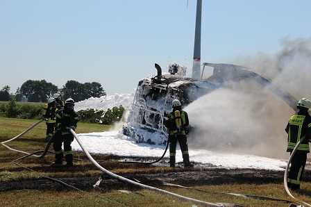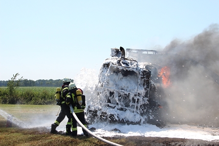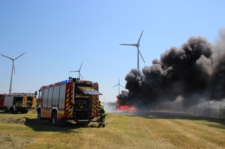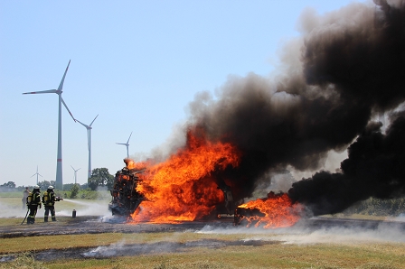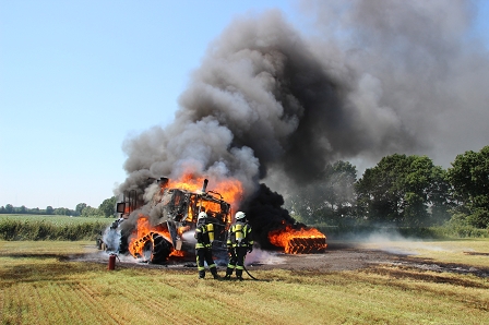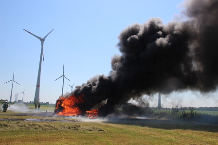 Zu einem Häckslerbrand zum Fuchsweg nach Scharrel wurden die Feuerwehren aus Scharrel und Ramsloh am Donnerstag gegen 14:22 Uhr gerufen. Beim Eintreffen der Wehren stand der Häcksler schon in Vollbrand. Unter Atemschutz musste das Fahrzeug gelöscht werden, da durch den Brand eine große Rauchentwicklung entstand. Was noch für die Feuerwehrkameraden erschwerend dazu kam war die große Hitze. Personen kamen nicht zu schaden, die Feuerwehren aus Scharrel und Ramsloh waren mit 7 Fahrzeugen und 50 Kameraden im Einsatz.