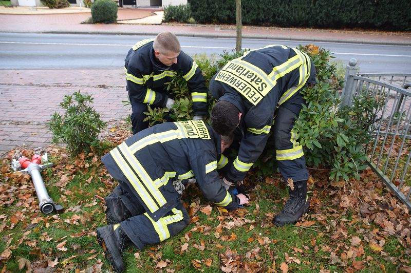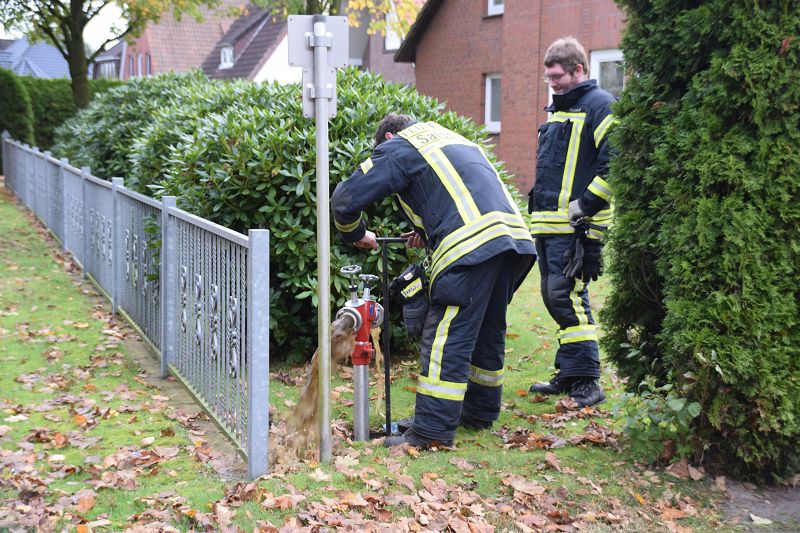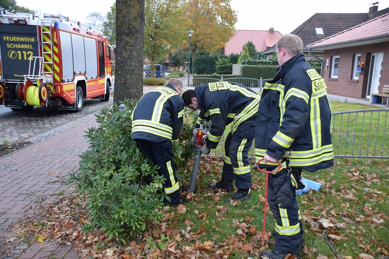 Am Samstag den 21.10.2017 gegen 09:00 Uhr führte die Freiwillige Feuerwehr Scharrel mit 20 aktiven Kameraden die alljährliche Hydrantenpflege durch. Diese dient dazu, die in den Löschbezirken Scharrel und Sedelsberg bis hin zum C-Port befindlichen Hydranten auf ihre Funktionsfähigkeit zu überprüfen und ggf. von Verschmutzungen oder ähnlichem zu befreien. Die Maßnahme ist notwendig, um im Einsatzfall schnell und zuverlässig eine Wasserversorgung herstellen zu können. Dieses heißt für die Kameraden 160 mal das Standrohr aufbauen, anschließen, Hydrant ausprobieren und mit einer Folie unter dem Deckel wieder verschließen. Jede Veränderung oder Beschädigung gegenüber des Vorjahres wird sofort dem OOWV gemeldet.