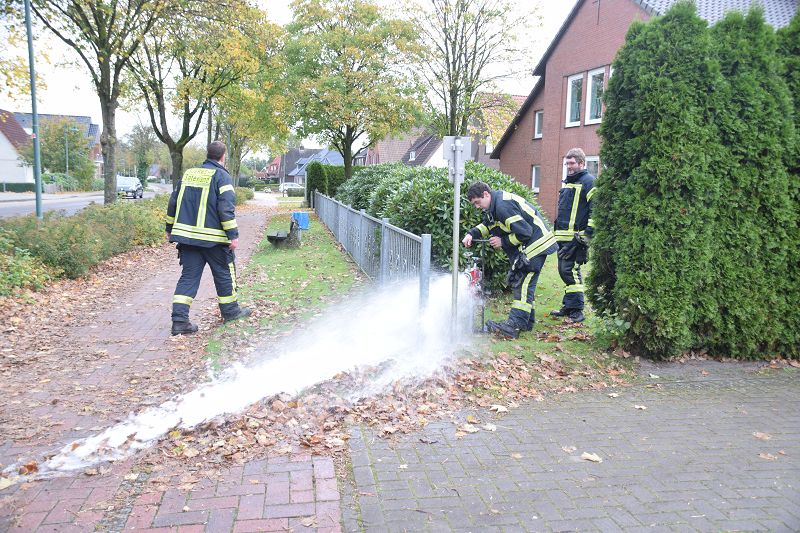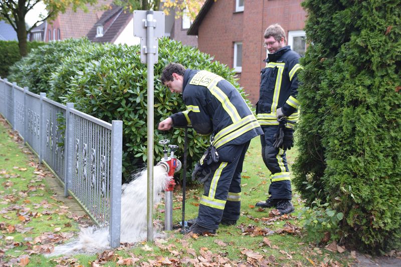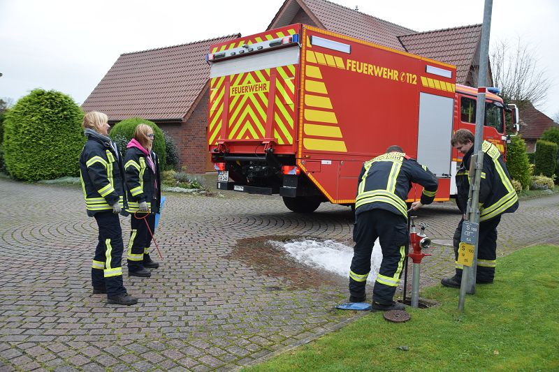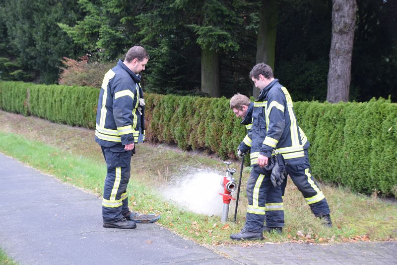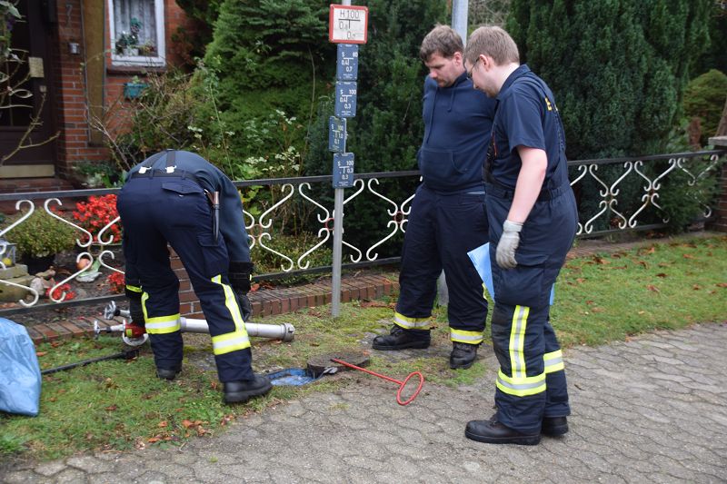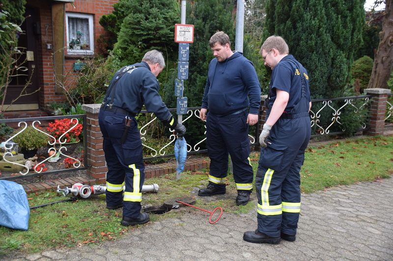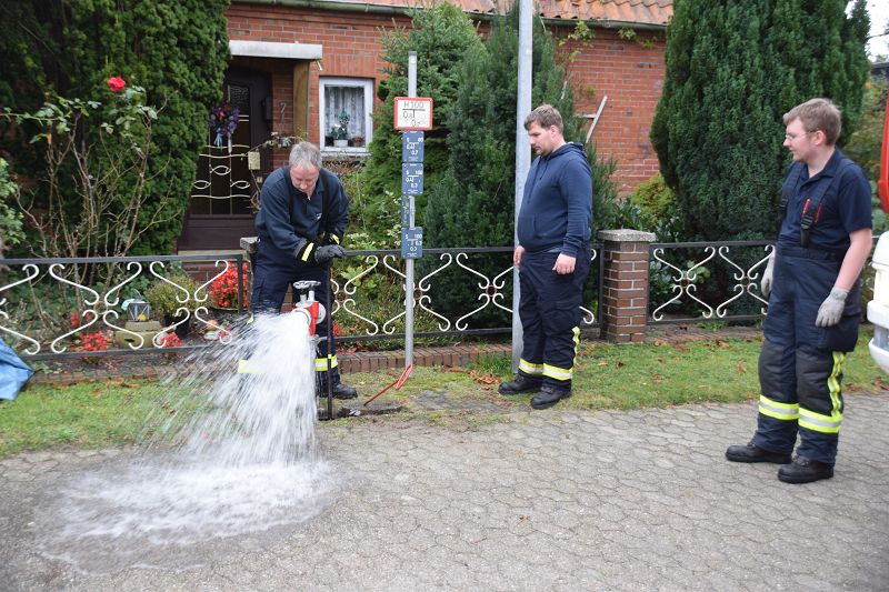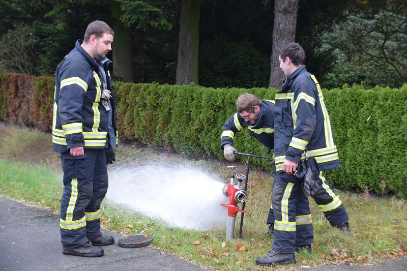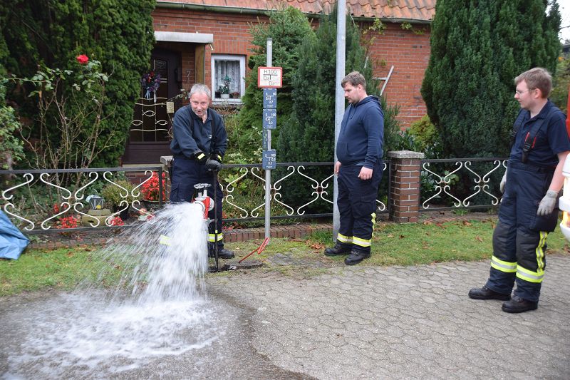 mal mussten die Kameraden der Feuerwehr Scharrel das Standrohr aufbauen, anschließen, Hydrant spülen wie hier an der Hauptstraße in Sedelsberg